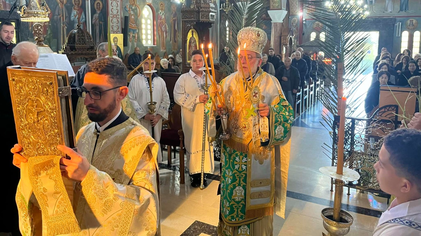 Πανεύφημε Κύριλλε ἰδού, σήμερον συνήλθομεν, ἐπιτελοῦντες τὴν μνήμην σου, τὴν ἀξιέπαινον, τὴν φωταγωγοῦσαν, ἀστραπαῖς τῆς χάριτος, θεόφρον Ἐκκλησίας τὰ ποίμνια· διὸ ἱκέτευε, δωρηθῆναι ταῖς ψυχαῖς ἡμῶν, τὴν εἰρήνην, καὶ τὸ μέγα ἔλεος.