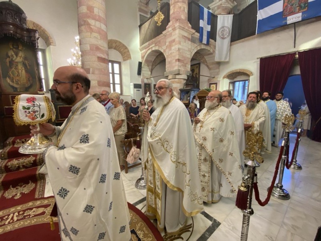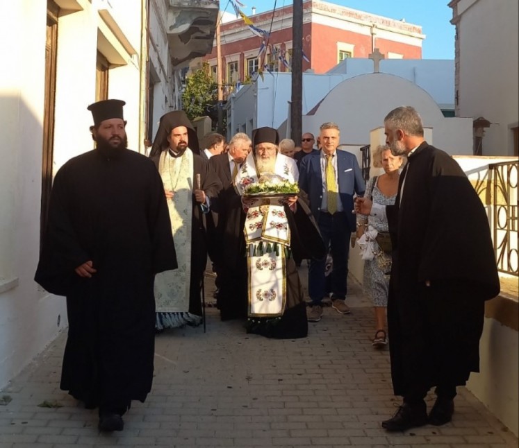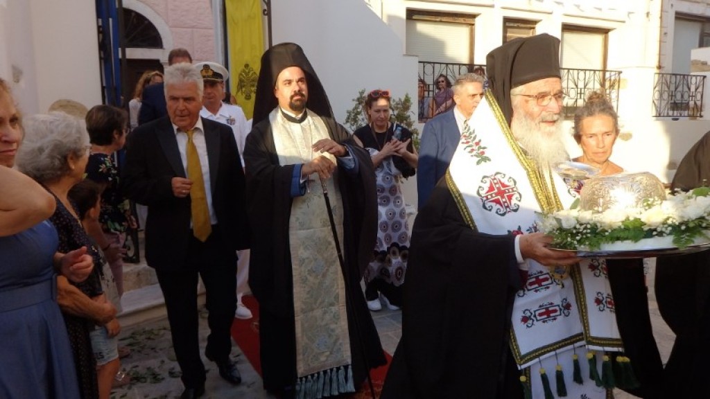 Την Τετάρτη 17 Ιουλίου 2024 ο Σεβασμιώτατος Μητροπολίτης μας συνοδευόμενος από τον Πρωτοσύγκελλο της Ιεράς Μητροπόλεως Ρόδου π. Θεωνά Καμπέρη και τον Διάκονο π. Τίτο Σωτηράκη μετέβη στην Λέρο και προέστη ως εκπρόσωπος της Αυτού Θειοτάτης Παναγιότητος, του Οικουμενικού Πατριάρχου κ.κ. ΒΑΡΘΟΛΟΜΑΙΟΥ, του πρώτου εορτασμού της Μνήμης της Οσίας Μητρός Γαβριηλίας της Κωνσταντινουπολίτιδος, της Ελεήμονος. Παρέστησαν ο Αντιπεριφερειάρχης της Περιφέρειας Νοτίου Αιγαίου Απόστολος Ασπράκης, οι τοπικές αυτοδιοικητικές Αρχές προεξάρχοντος του Δημάρχου Λέρου Τιμοθέου Κωττάκη, οι στρατιωτικές Αρχές προξάρχοντος του Φρουράρχου Λέρου, εκπρόσωποι φορέων και συλλόγων, και πλήθος κόσμου.