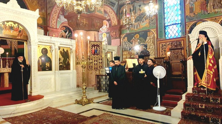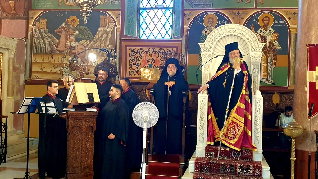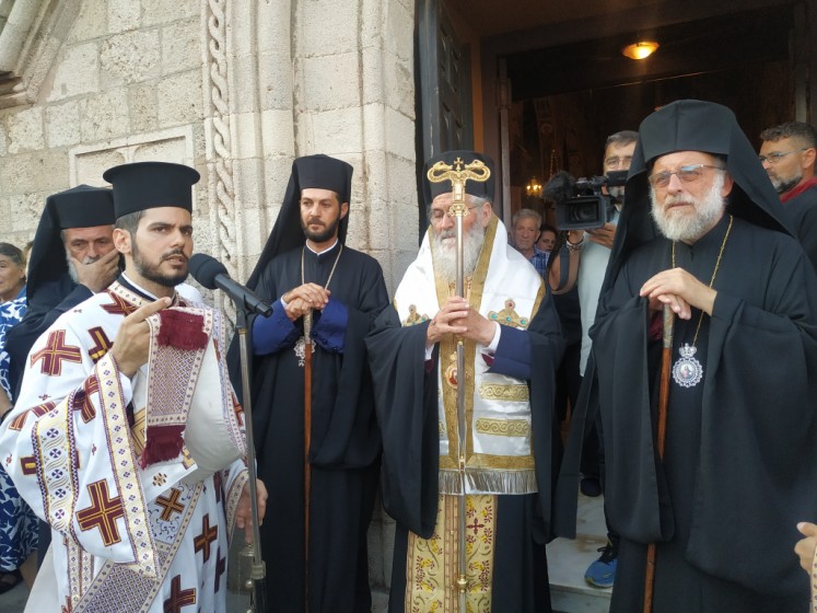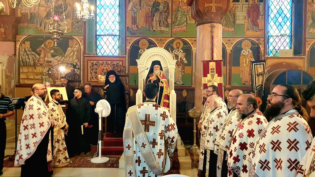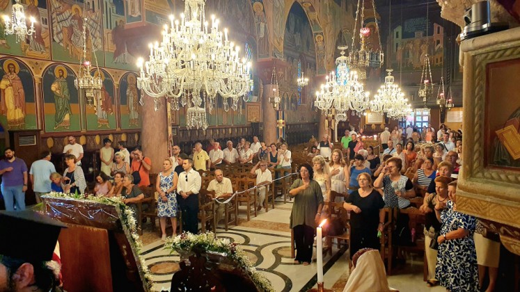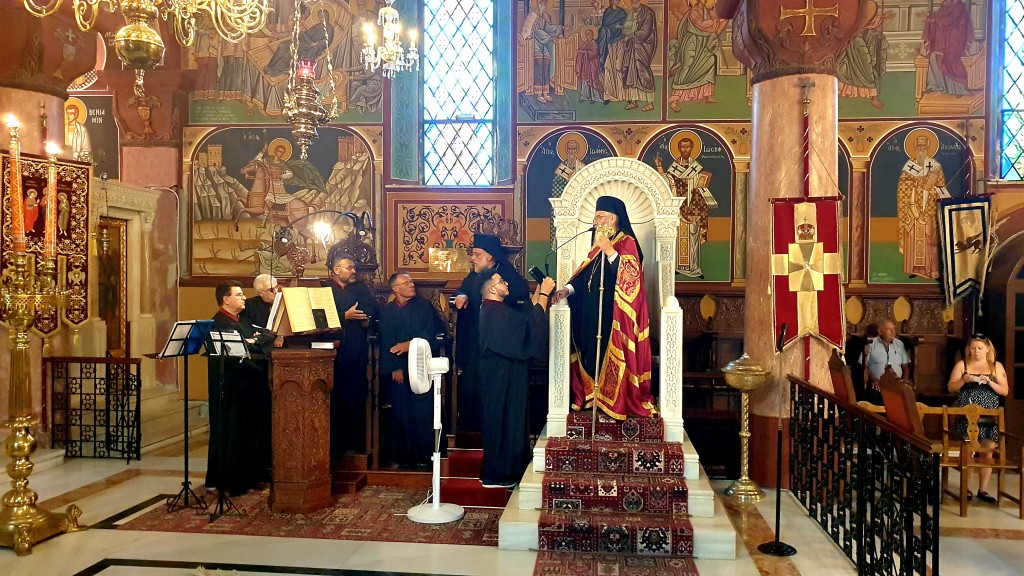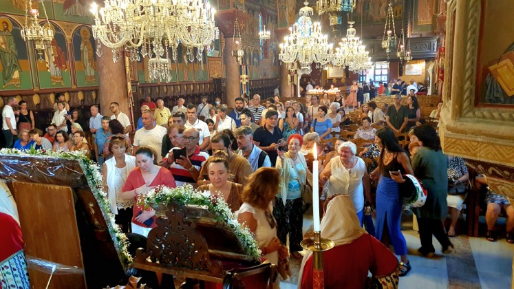 Κατά την υποδοχή εψάλη δέησις στα προπύλαια του ιερού Ναού και στη συνέχεια έλαβε χώρα ο πανηγυρικός Εσπερινός, χοροστατούντος του Σεβασμιωτάτου αγίου Λέρου. Την Κυριακή 21 Ιουλίου του Όρθρου χοροστάτησε ο Θεοφιλέστατος άγιος Στρατονικείας, ενώ της Θείας Λειτουργίας προέστη ο Σεβασμιώτατος άγιος Λέρου, συλλειτουργούντων των Θεοφιλεστάτων Επισκόπων Στρατονικείας κ. Στεφάνου και Ολύμπου κ. Κυρίλλου.