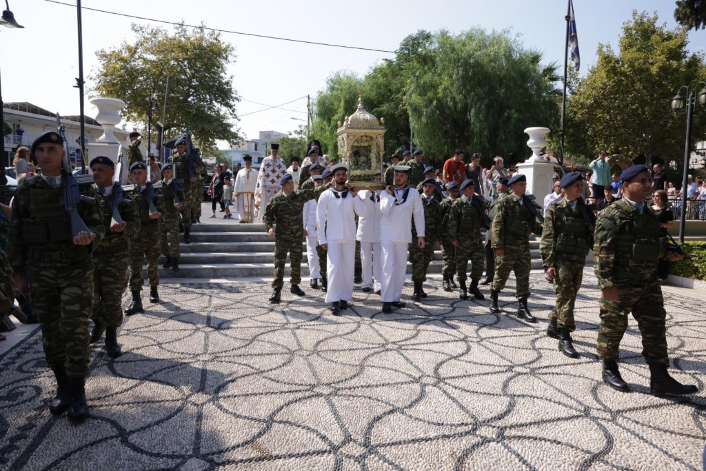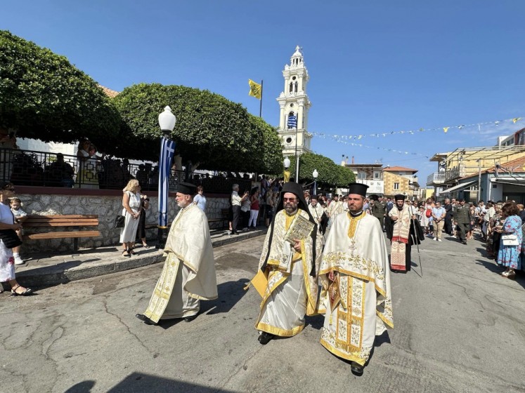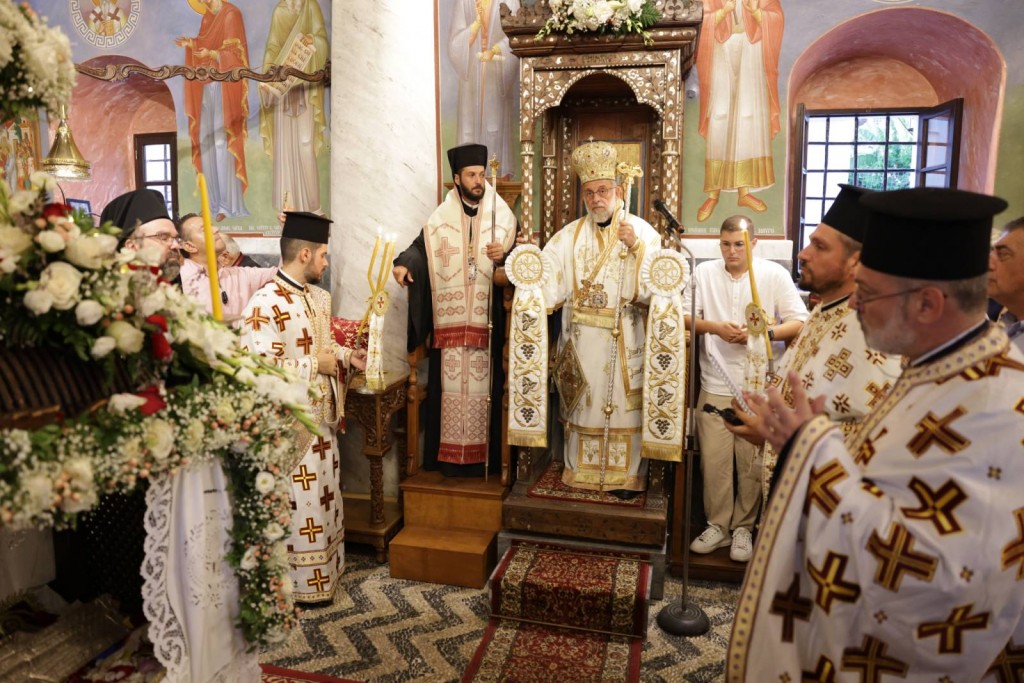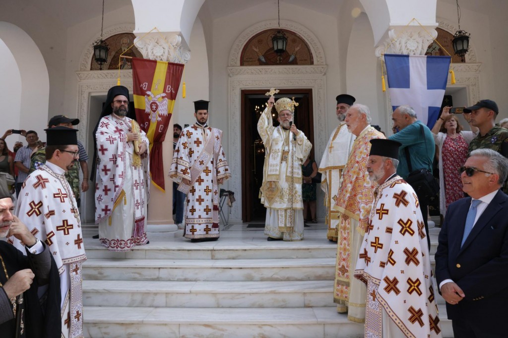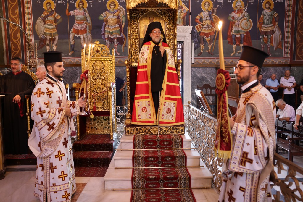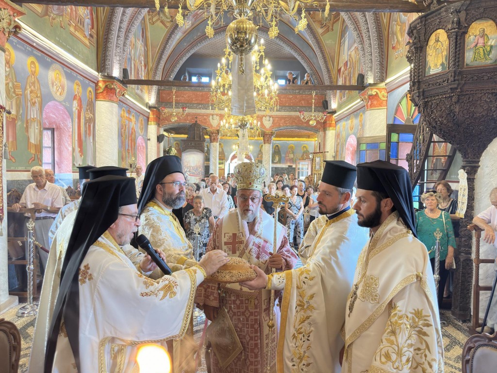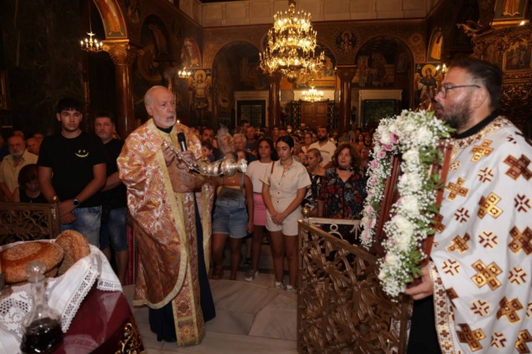 Την κυριώνυμη ημέρα της Εορτής ο Σεβασμιώτατος Μητροπολίτης μας χοροστάτησε του Όρθρου και προέστη της τρισαρχιερατικής Θείας Λειτουργίας, συλλειτουργούντων του Σεβ. αγίου Νουβίας και του Θεοφιλ. αγίου Ολύμπου στον ιερό Ναό Κοιμήσεως Θεοτόκου Ιαλυσού. Μετά το πέρας της Θείας Λειτουργίας, έλαβε χώρα η μεγαλοπρεπής λιτανεία, την οποία ακολούθησε το σύνολο των τοπικών πολιτικών και στρατιωτικών Αρχών του Νησιού μας και πλήθος κόσμου.