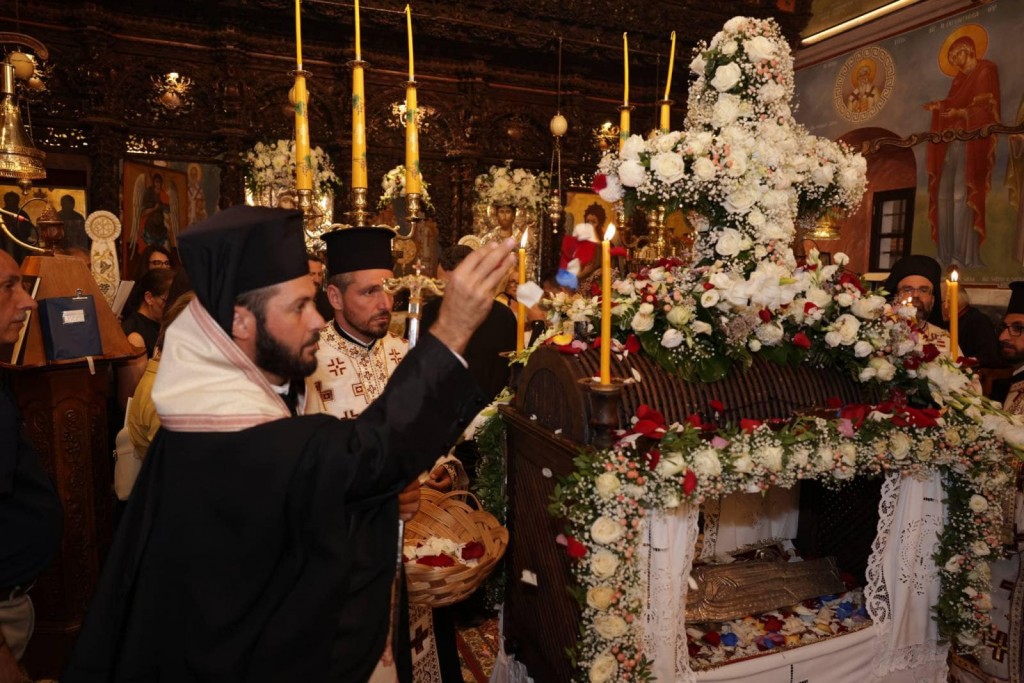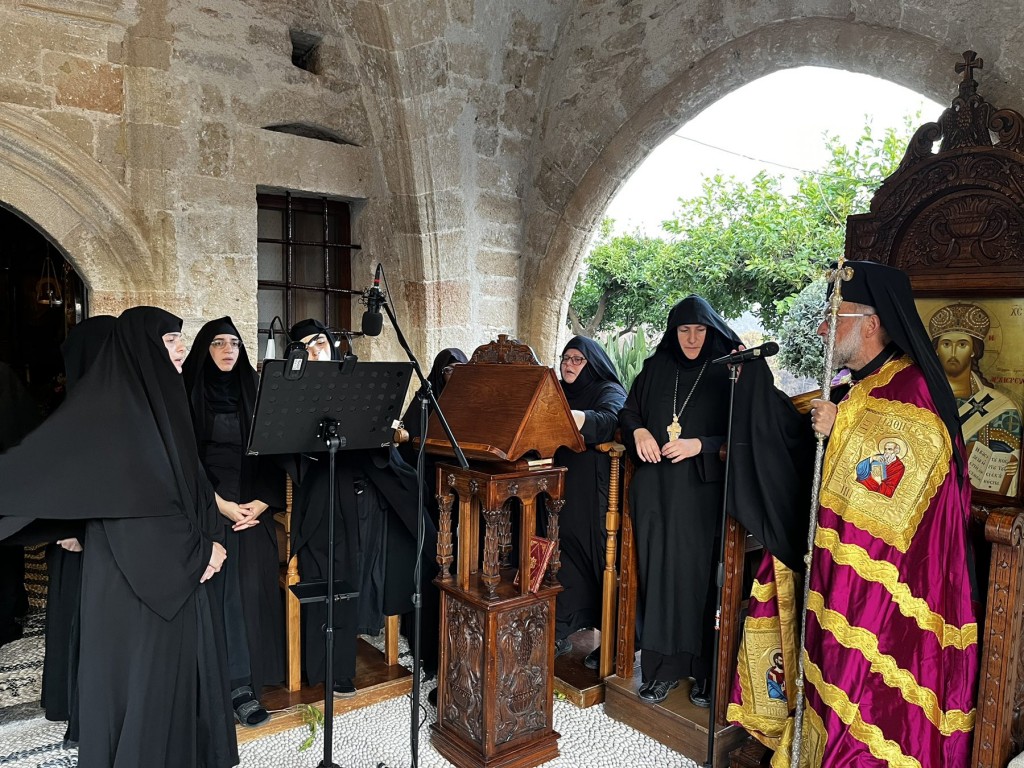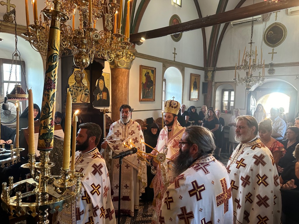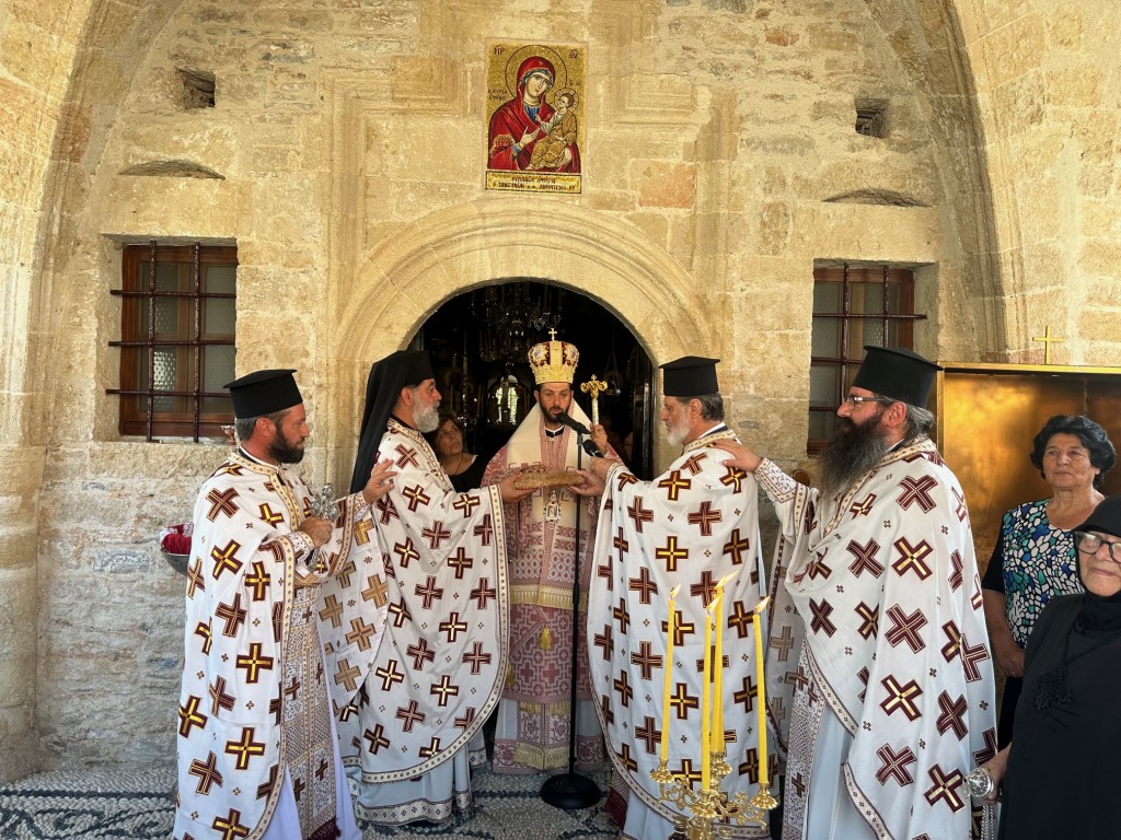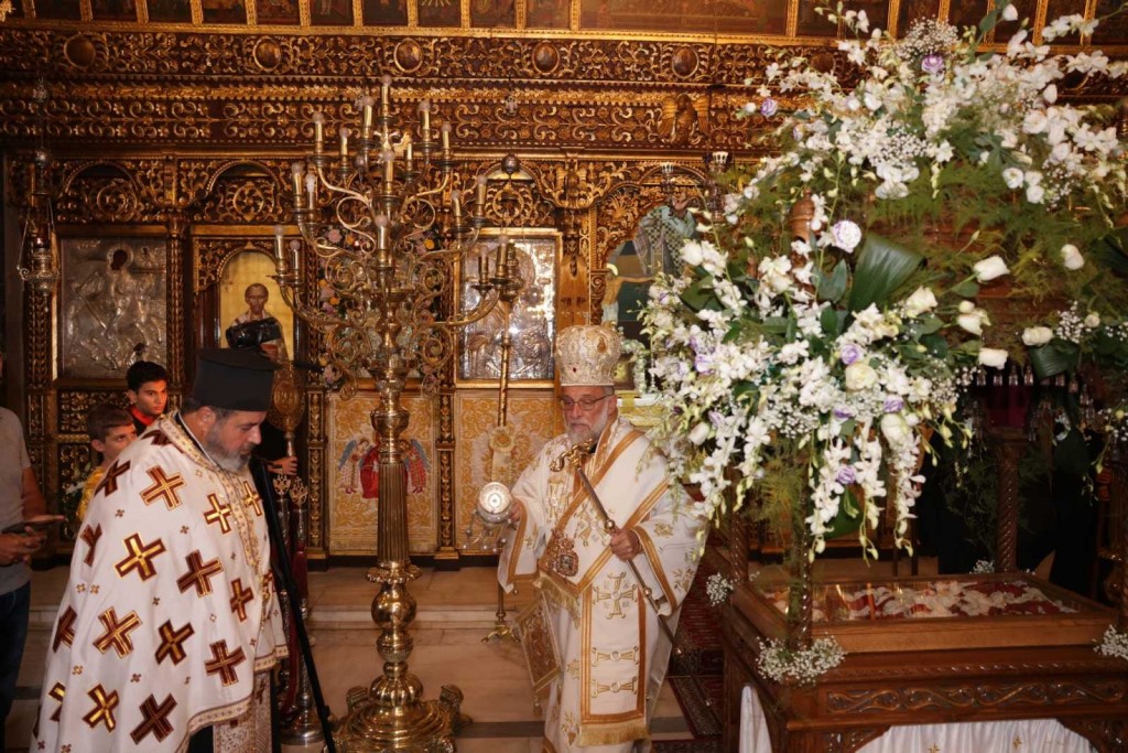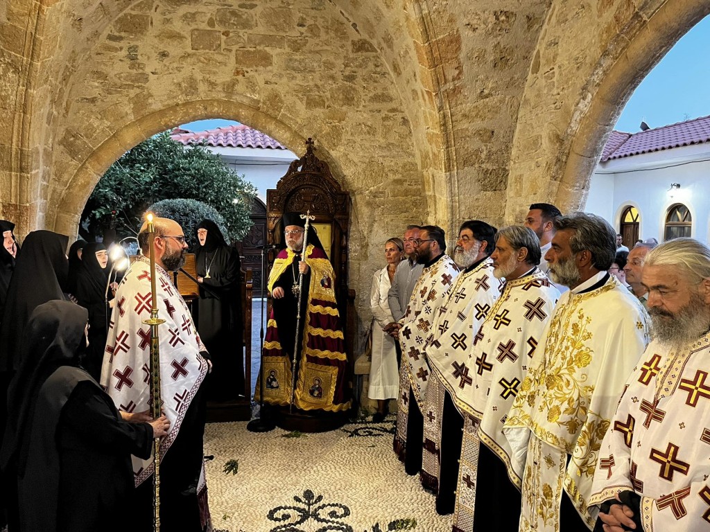 Του πανηγυρικού Εσπερινού στον ως ανω ιερό Ναό χοροστάτησε ο Σεβασμιώτατος Μητροπολίτης Νουβίας κ. Σάββας, συγχοροστατούντος του Θεοφιλεστάτου Επίσκοπου Ολύμπου κ. Κυρίλλου. Την κυριώνυμη ημέρα της Εορτής χοροστάτησε του Όρθρου και προέστη της Θείας Λειτουργίας ο Σεβασμιώτατος Μητροπολίτης μας, συλλειτουργούντος του Σεβασμιωτάτου αγίου Νουβίας. Μετά το πέρας της Θείας Λειτουργίας, έλαβε χώρα η μεγαλοπρεπής λιτανεία, την οποία συνόδευσαν ο τ. Υφυπουργός Ναυτιλίας κ. Ιωάννης Παπάς, οι Βουλευτές Μάνος Κόνσολας και Βασίλειος Υψηλάντης, ο Δήμαρχος Ρόδου κ. Αλέξανδρος Κολιάδης, ο Διοικητής της 95ΑΔΤΕ κ. Εμμανουήλ Χατζής και άλλοι εκπρόσωποι των τοπικών αυτοδιοικητικών και στρατιωτικών Αρχών, καθώς και πλήθος προσκυνητών απ᾿ όλο το νησί.