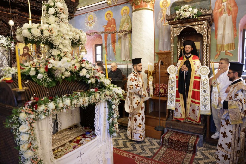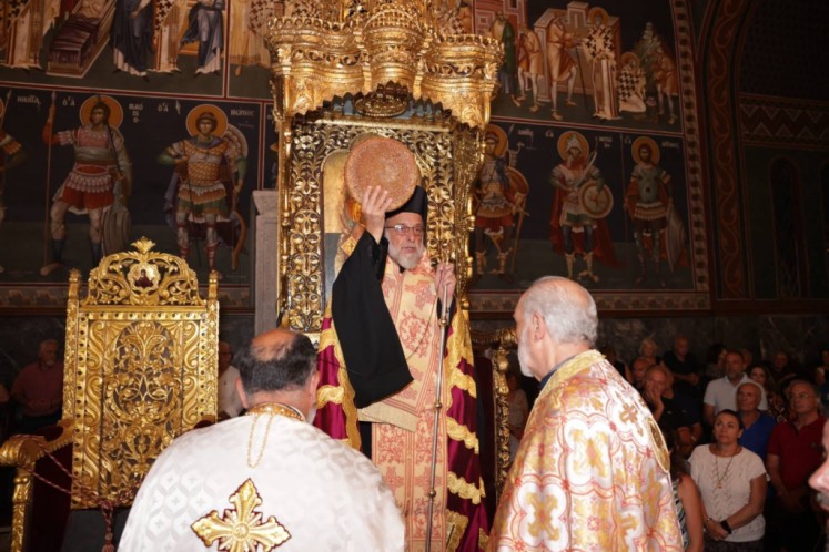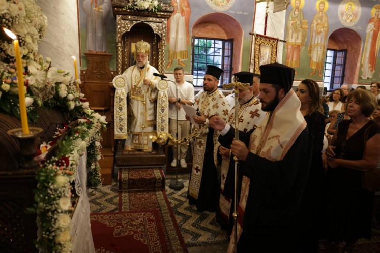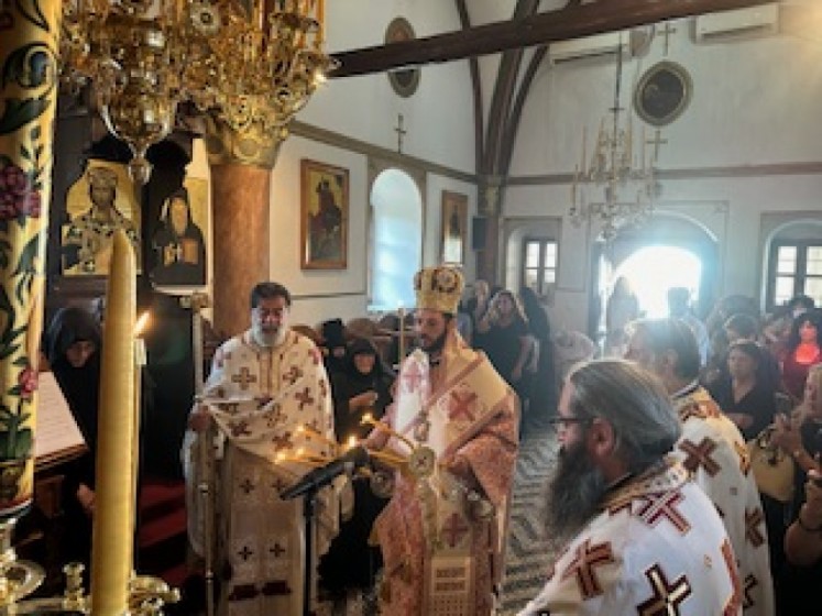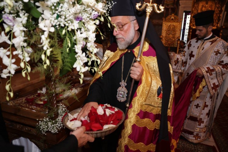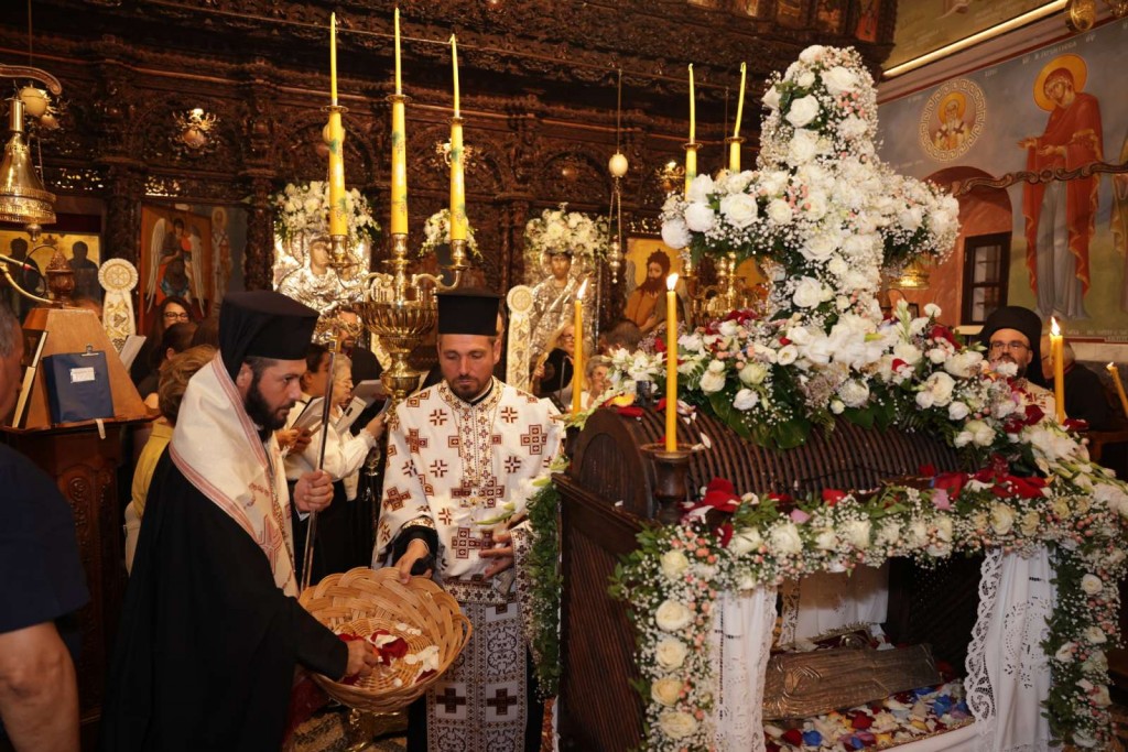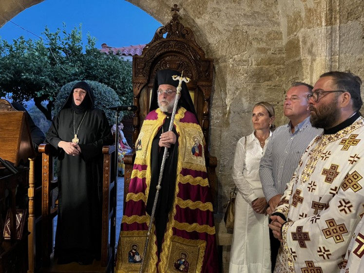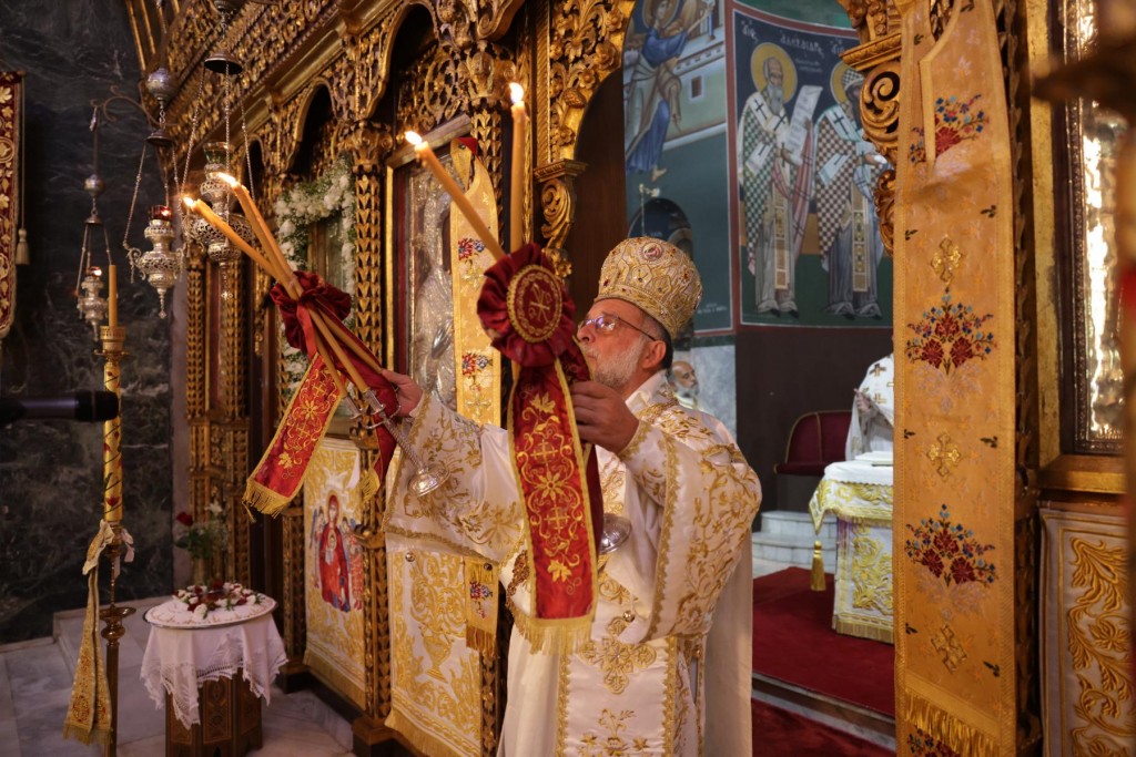 Του πανηγυρικού Εσπερινού στον ως ανω ιερό Ναό χοροστάτησε ο Σεβασμιώτατος Μητροπολίτης Νουβίας κ. Σάββας, συγχοροστατούντος του Θεοφιλεστάτου Επίσκοπου Ολύμπου κ. Κυρίλλου. Την κυριώνυμη ημέρα της Εορτής χοροστάτησε του Όρθρου και προέστη της Θείας Λειτουργίας ο Σεβασμιώτατος Μητροπολίτης μας, συλλειτουργούντος του Σεβασμιωτάτου αγίου Νουβίας. Μετά το πέρας της Θείας Λειτουργίας, έλαβε χώρα η μεγαλοπρεπής λιτανεία, την οποία συνόδευσαν ο τ. Υφυπουργός Ναυτιλίας κ. Ιωάννης Παπάς, οι Βουλευτές Μάνος Κόνσολας και Βασίλειος Υψηλάντης, ο Δήμαρχος Ρόδου κ. Αλέξανδρος Κολιάδης, ο Διοικητής της 95ΑΔΤΕ κ. Εμμανουήλ Χατζής και άλλοι εκπρόσωποι των τοπικών αυτοδιοικητικών και στρατιωτικών Αρχών, καθώς και πλήθος προσκυνητών απ᾿ όλο το νησί.