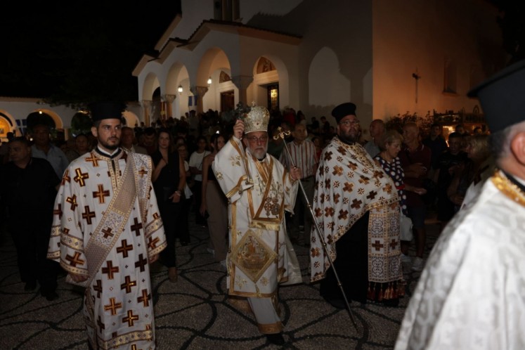 Ο Σεβασμιώτατος Μητροπολίτης μας το βράδυ της Τρίτης, 13 Αυγούστου 2024, προέστη της Ακολουθίας του Επιταφίου της Υπεραγίας Θεοτόκου και της λιτανείας στον ιερό Ναό Κοιμήσεως της Θεοτόκου Ιαλυσού. Στην Ακολουθία και στην λιτανεία συμμετείχε ο Θεοφιλέστατος Επίσκοπος Ολύμπου κ. Κύριλλος.