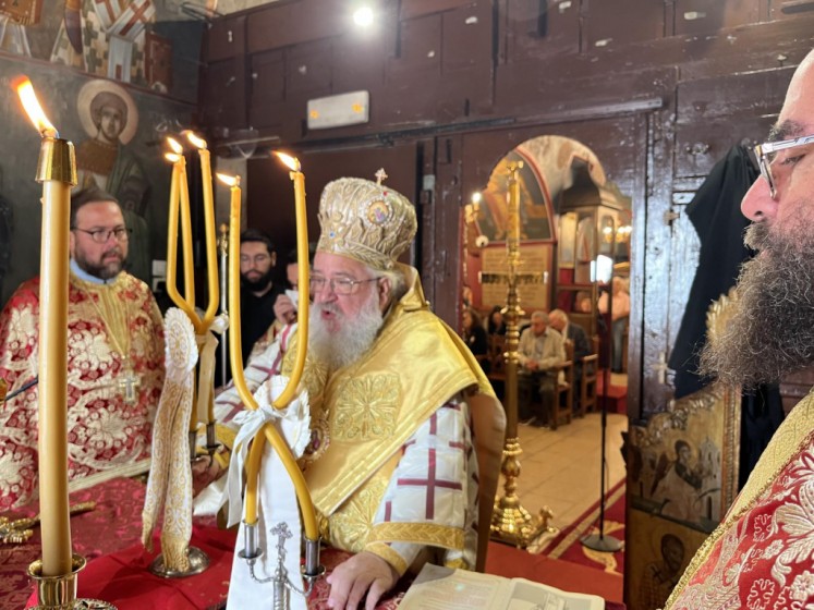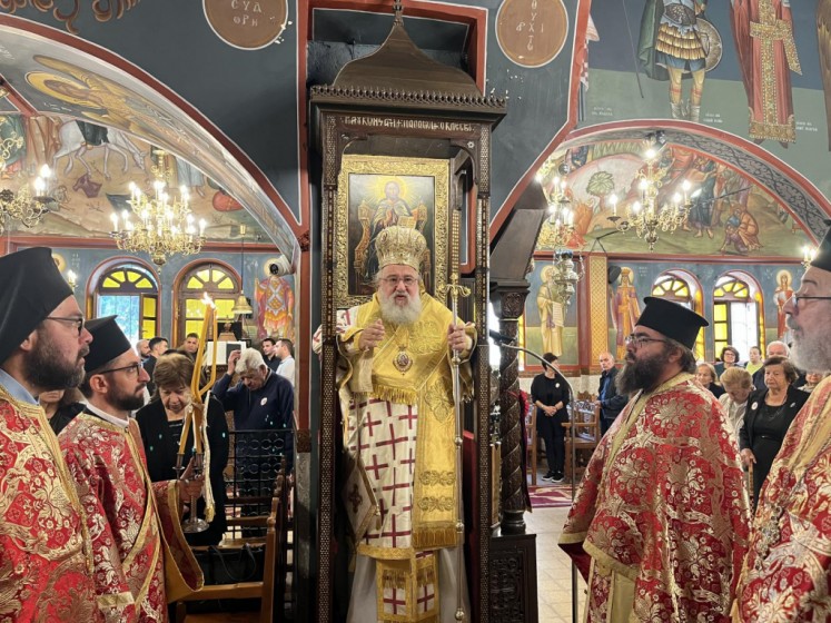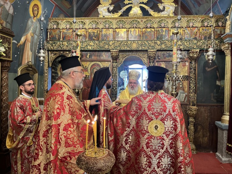 Την επαύριο χοροστάτησε του Όρθρου και προέστη της Θείας Λειτουργίας ο Θεοφιλέστατος Επίσκοπος Πολυστύλου κ. Σωφρόνιος, Βοηθός Επίσκοπος του Σεβασμιωτάτου Μητροπολίτου Ξάνθης κ. Παντελεήμονος, ο οποίος βρέθηκε στο νησί μας εκπροσωπώντας την Ιερά Μητρόπολη Ξάνθης στο 6ο Διεθνές Συνέδριο του Οικουμενικού Πατριαρχείου στην Ποιμαντική Διακονία στον χώρο της Υγείας, το οποίο πραγματοποιείται κάθε τρία χρόνια και έλαβε χώρα από τις 29 Οκτωβρίου έως τις 2 Νοεμβρίου 2025 στο ξενοδοχείο Rodos Palace.