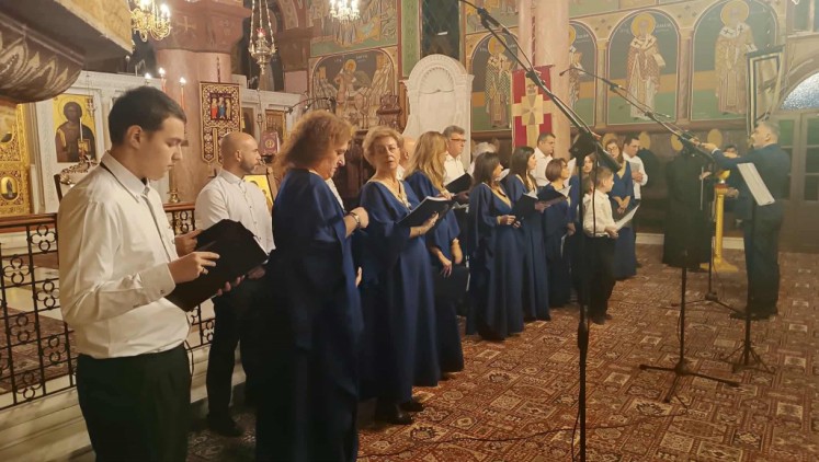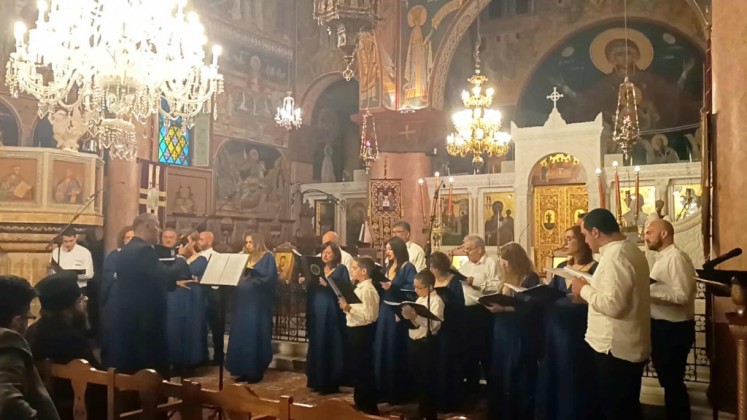 Το καλλιτεχνικό πρόγραμμα ξεκίνησε με τη Βυζαντινή Χορωδία του Συλλόγου Ιεροψαλτών Ρόδου, υπό τη διεύθυνση του Πρωτοψαλτη του Μητροπολιτικού Ναου Εισοδίων, Παναγιώτη Μανουσάκη. Η χορωδία απέδωσε ύμνους της περιόδου με ακρίβεια και ευαισθησία, δημιουργώντας ατμόσφαιρα βαθιάς κατάνυξης.