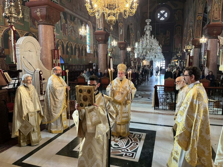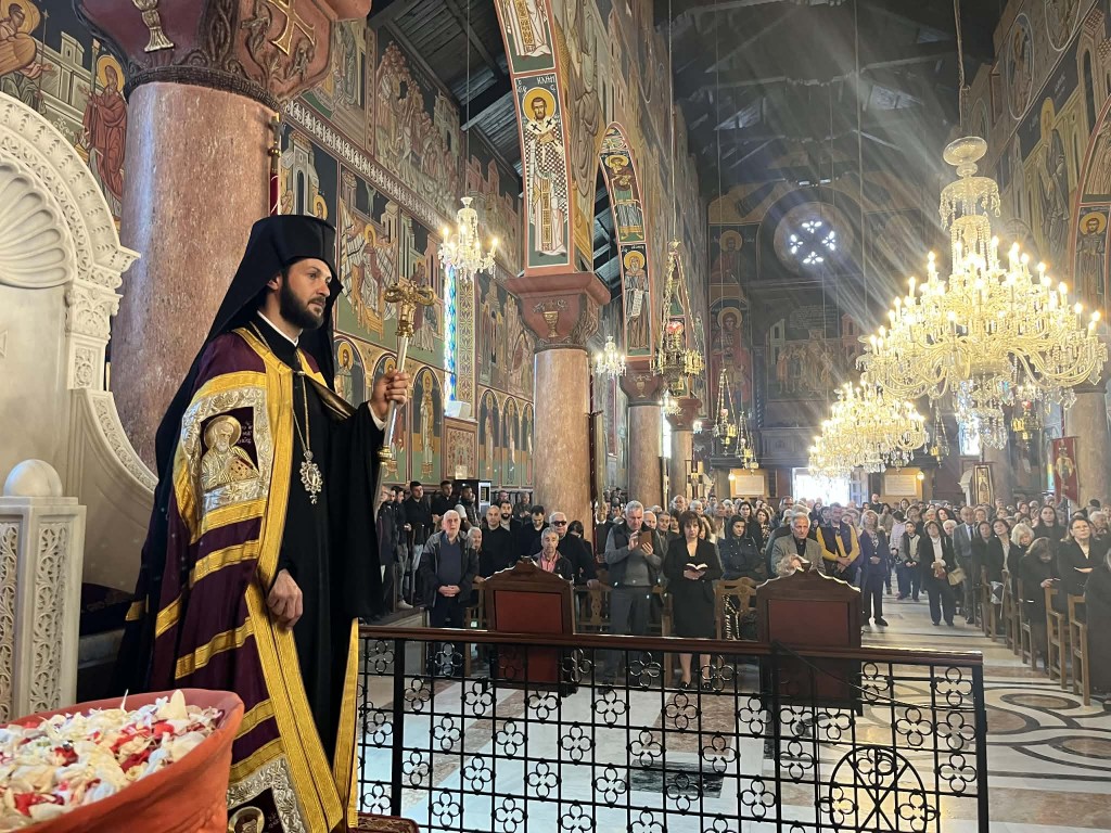 Το εσπέρας της Μεγάλης Πέμπτης (9 Απριλίου 2026) σε κλίμα ιεράς κατανύξεως και με την αθρόα συμμετοχή των πιστών τελέσθηκε στους Ναούς μας η κορύφωση του Θείου Δράματος, η Ακολουθία των Παθών του Κυρίου. Ο Σεβασμιώτατος Μητροπολίτης μας χοροστάτησε στον Μητροπολιτικό ιερό Ναό Εισοδίων της Θεοτόκου και στη συνέχεια στον Καθεδρικό ιερό Ναό Ευαγγελισμού της Θεοτόκου, ο δε Θεοφιλέστατος Επίσκοπος Ολύμπου κ. Κύριλλος χοροστάτησε στον ενοριακό ιερό Ναό Κοιμήσεως Θεοτόκου Αφάντου.