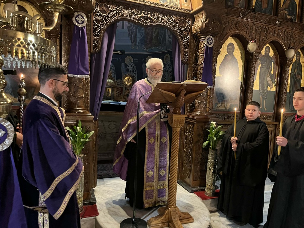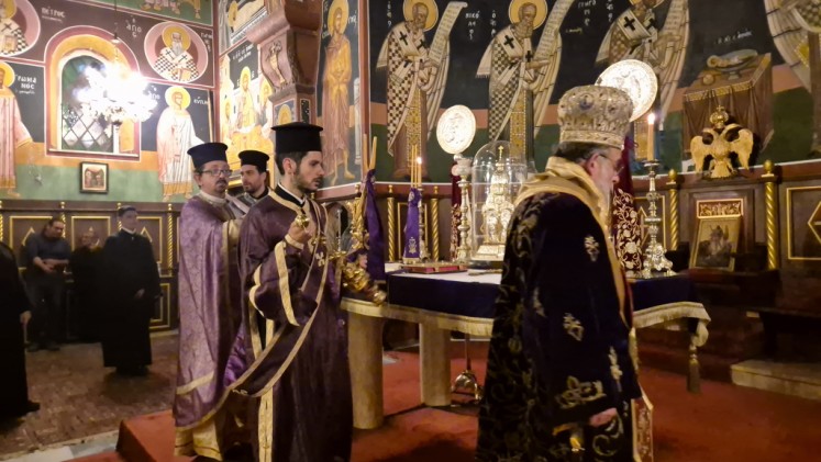 Του Εσπερινού της Αποκαθηλώσεως (Παρασκευή 10 Απριλίου)ο Σεβασμιώτατος χοροστάτησε στον Μητροπολιτικό ιερό Ναό Εισοδίων της Θεοτόκου. Στον Καθεδρικό ιερό Ναό Ευαγγελισμού της Θεοτόκου χοροστάτησε ο Θεοφιλέστατος άγιος Ολύμπου.