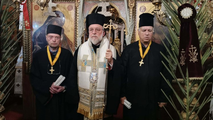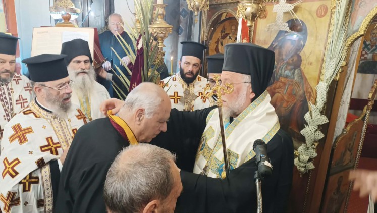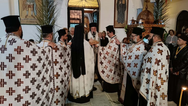 Μέσα στην χαρμόσυνη ατμόσφαιρα της Λαμπροφόρου Αναστάσεως του Κυρίου, πανηγύρισαν οι ιεροί Ναοί στη Μητρόπολη μας, που είναι αφιερωμένοι στον Άγιο Μεγαλομάρτυρα Γεώργιο τον Τροπαιοφόρο. Ο Σεβασμιώτατος χοροστάτησε του πανηγυρικού Εσπερινού και προέστη της Λιτανείας στον Ενοριακό ιερό Ναό Αγίου Γεωργίου (Κάτω) πόλεως Ρόδου την Τετάρτη 22 Απριλίου 2026, απέδωσε δε τα οφφίκια του Πρωτοψάλτου και Λαμπαδαρίου της Ιεράς Μητρόλεως Ρόδου αντίστοιχα στους Ιεροψάλτες του ιερού Ναού κ. Ἰωάννη Τριανταφύλου και κ. Ιωάννη Φαρμακίδη, περικόσμησε δε αυτούς με τον Χρυσού Σταυρό των εν Δωδεκανήσω Μητροπόλεων του Οικουμενικού Πατριαρχείου (ανώτατη τιμητική διάκριση της τοπικής Εκκλησίας), εκφράσας κατά την προσφώνησή του προς αυτούς τον έπαινο και την ευαρέσκεια της Εκκλησίας για την πολυετή προσφορά τους στα Αναλόγια.