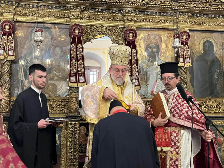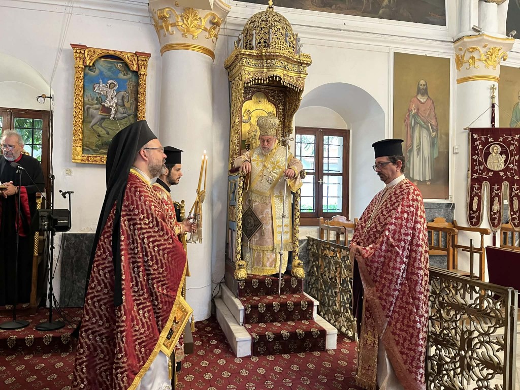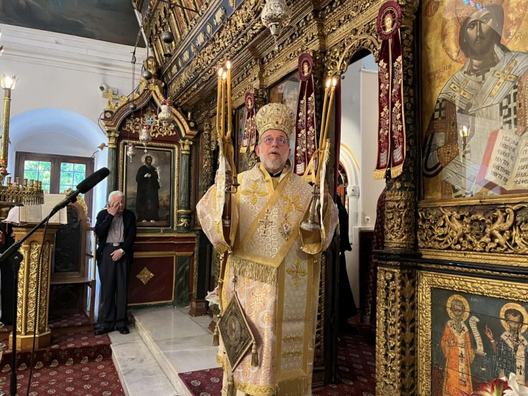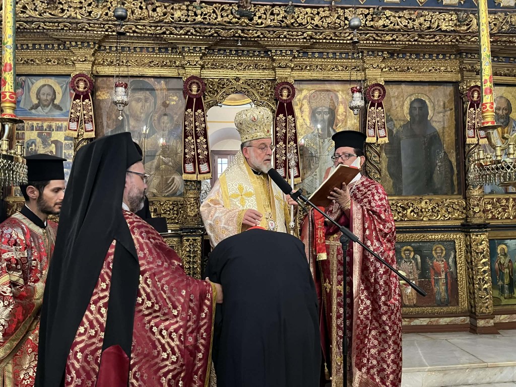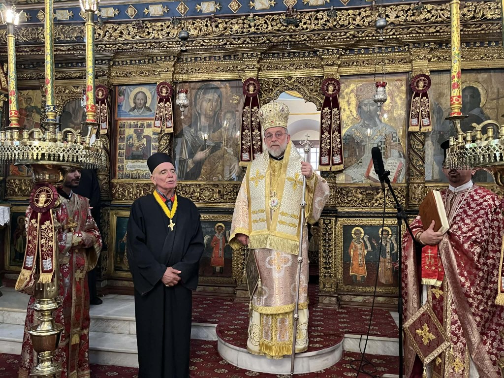 Πριν την απόλυση της Θείας Λειτουργίας ο Παν/τος Πρωτοσύγκελλος π. Θεωνάς Καμπέρης προσφώνησε, ευχηθείς κατάλληλα στον Σεβασμιώτατο με την ευκαιρία της 22ας Επετείου της Χειροτονίας του (Κυριακή Μυροφόρων 2004). Αντιφώνησε ο Σεβασμιώτατος εκφράζοντας τις ευχαριστίες του και ακολούθως προέβη στην απονομή του Οφφικίου του Λαμπαδαρίου της Ιεράς Μητροπόλεως Ρόδου και του Χρυσού Σταυρού των εν Δωδεκανήσω Μητροπόλεων του Οικουμενικού Πατριαρχείου στον Ιεροψάλτη του ιερού Ναού και συνταξιούχο Εκπαιδευτικό κ. Φώτιο Ζάγορα, εκφράζοντας προς αυτόν την ευαρέσκεια και τον δίκαιο έπαινο της Εκκλησίας για την διακονία του στο αναλόγιο και την εν γένει ιεροψαλτική του προσφορά.