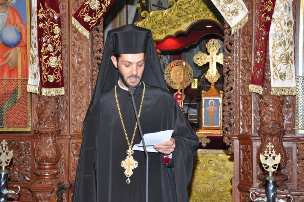 Πρίν την απόλυση της Θείας Λειτουργίας ο Σεβασμιώτατος επέδωσε εκ μέρους του Μακαριωτάτου Αρχιεπισκόπου Αθηνών κ. κ. Ιερωνύμου έπαινο στον μαθητή της Γ’ Λυκείου Μιχαήλ Σκανδαλίδη, ο οποίος διακρίθηκε με ποίημα του στον πανελλήνιο μαθητικό διαγωνισμό για τον Άγιο Κοσμά τον Αιτωλό.