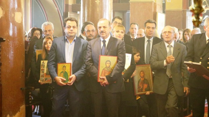 Πρό της απολύσεως της Θείας Λειτουργίας πραγματοποιήθηκε η λιτάνευση των ιερών Εικόνων και των τιμίων Λειψάνων πέριξ του ιερού Ναού, εκφωνήθηκε σε τρείς στάσεις το Σύμβολο της Πίστεως και αναγνώσθηκε κατά την τάξη από τον Σεβασμιώτατο το Συνοδικό της Ορθοδοξίας.
