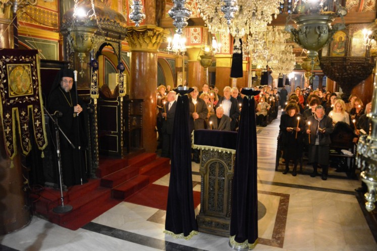 Σε κατανυκτική ατμόσφαιρα τελέσθηκε το εσπέρας της Κυριακής των Βαΐων, 9 Απριλίου 2017, η πρώτη Ακολουθία του Νυμφίου (Όρθρος της Αγίας και Μεγάλης Δευτέρας) στον Μητροπολιτικό ιερό Ναό Εισοδίων της Θεοτόκου Ρόδου, χοροστατούντος του Σεβασμιωτάτου Ποιμενάρχου μας κ. κ. Κυρίλλου.
