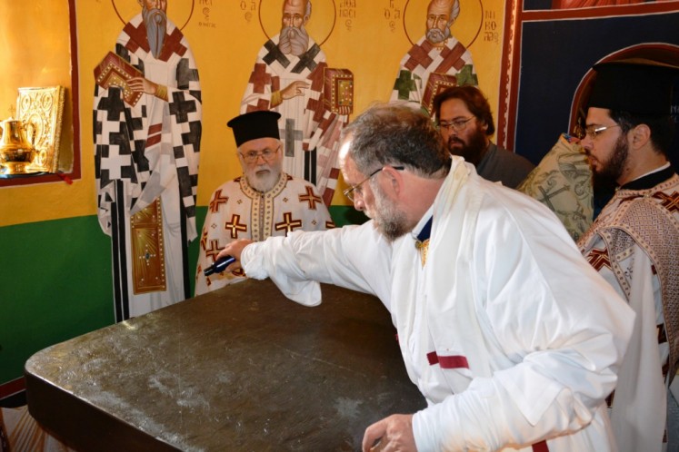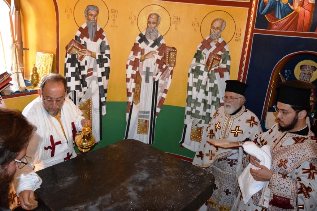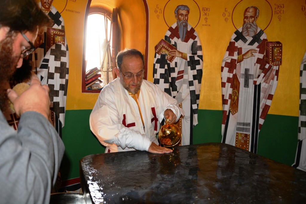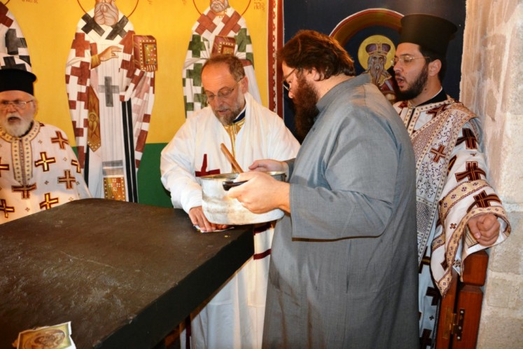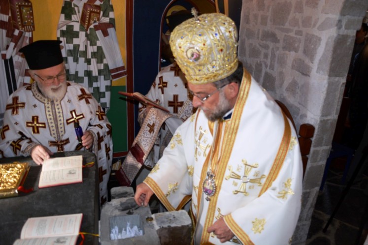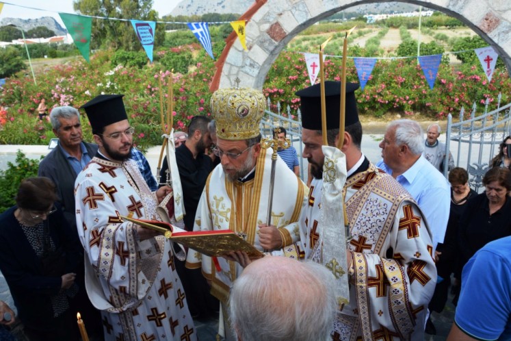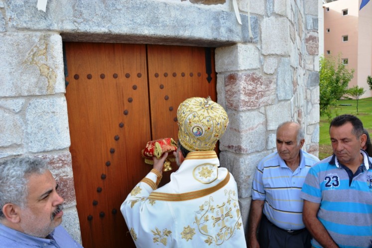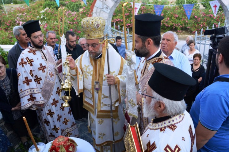 Το Σάββατο 27 Μαΐου 2017, ο Σεβασμιώτατος Μητροπολίτης μας τέλεσε τα εγκαίνια του ιερού Ναού Ζωοδόχου Πηγής Κολυμπίων, τον οποίο ανήγειρε στον αύλειο χώρο του ξενοδοχείου «MYRINA» ο κ. Εμμανουήλ Πετρονιάτης. Στο φυτό της Αγίας Τραπέζης κατέθεσε τα τίμια Λείψανα των Αγίων: Μάρτυρος Τρύφωνος, Ιερομάρτυρος Κυρίλλου του Λουκάρεως Πατριάρχου Κων/πόλεως και των εκ Μουλίων της Κρήτης Νεομαρτύρων Αποστόλου, Δημητρίου και Ζαχαρίου. Ο Σεβασμιώτατος στην ομιλία του συνεχάρη τον κτίτορα για τον περικαλλή Ναό που οικοδόμησε και με ιδιαίτερη καλαισθησία διακόσμησε και ευχήθηκε τα δέοντα. Μετά το πέρας της Θείας Λειτουργίας ο κ. Πετρονιατης και η οικογένεια του στον χώρο του ξενοδοχείου δεξιώθηκαν τον Σεβασμιώτατο, τους ιερείς και το πολυπληθές εκκλησίασμα.