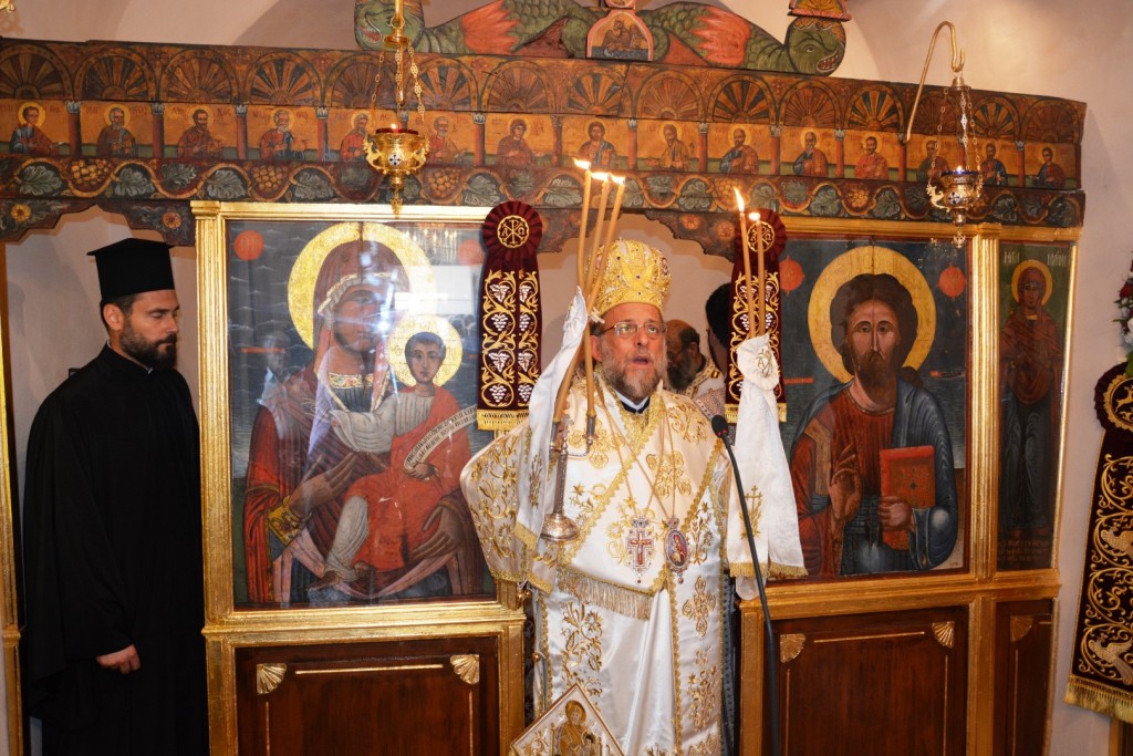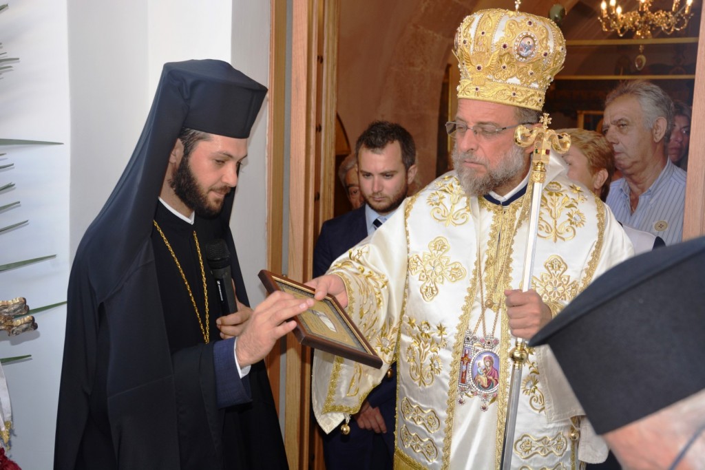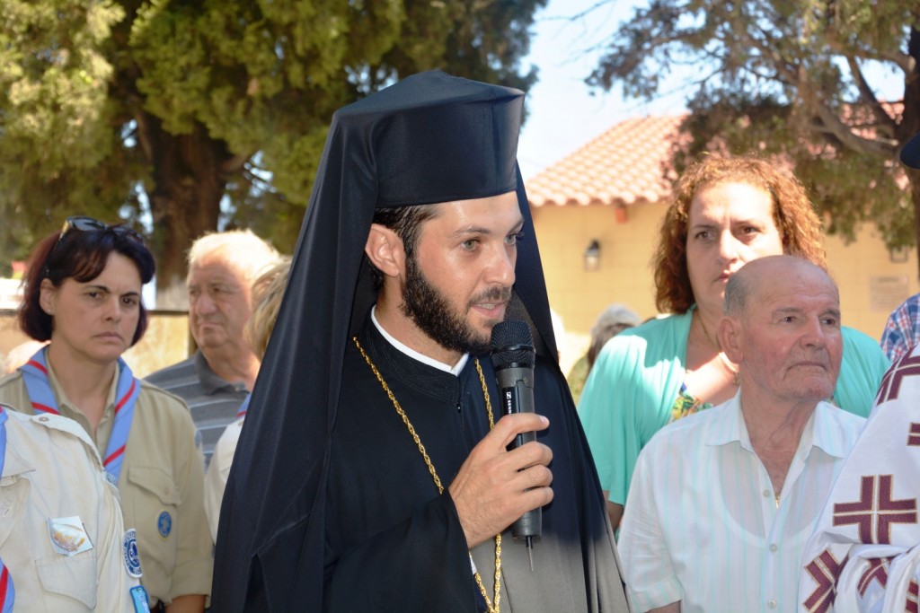 Ο Σεβασμιώτατος στην ομιλία του εξέφρασε τη χαρά και τα συγχαρητήρια του για την αποκατάσταση και ανακαίνιση του ιερού Ναού και την συντήρηση του παλαιού τέμπλου και των εικόνων του, απέδωσε τον έπαινο και την ευαρέσκεια της Εκκλησίας στον Προϊστάμενο της ενορίας Πανοσιολ. Αρχιμ. Κύριλλο Παπανθίμου, στα μέλη της Εκκλησιαστικής Επιτροπής Παναή Νικόλαο, Κοντογιάννη Αλέξανδρο, Παστιδενό Νικόλαο και Σορωνιάτη Δέσποινα, στον βασικό χορηγό του έργου κ. Βασίλειο Σταυριανό, και σε όλους, όσοι συνέβαλαν στην αποπεράτωση του έργου ευσεβείς κατοίκους της κωμοπόλεως Παραδεισίου, τόνισε δε ιδιαίτερα τη σημασία αποκαταστάσεως του ιερού Ναού, ο οποίος αποτελεί μνημείο της θρησκευτικής και πολιτιστικής μας κληρονομιάς.