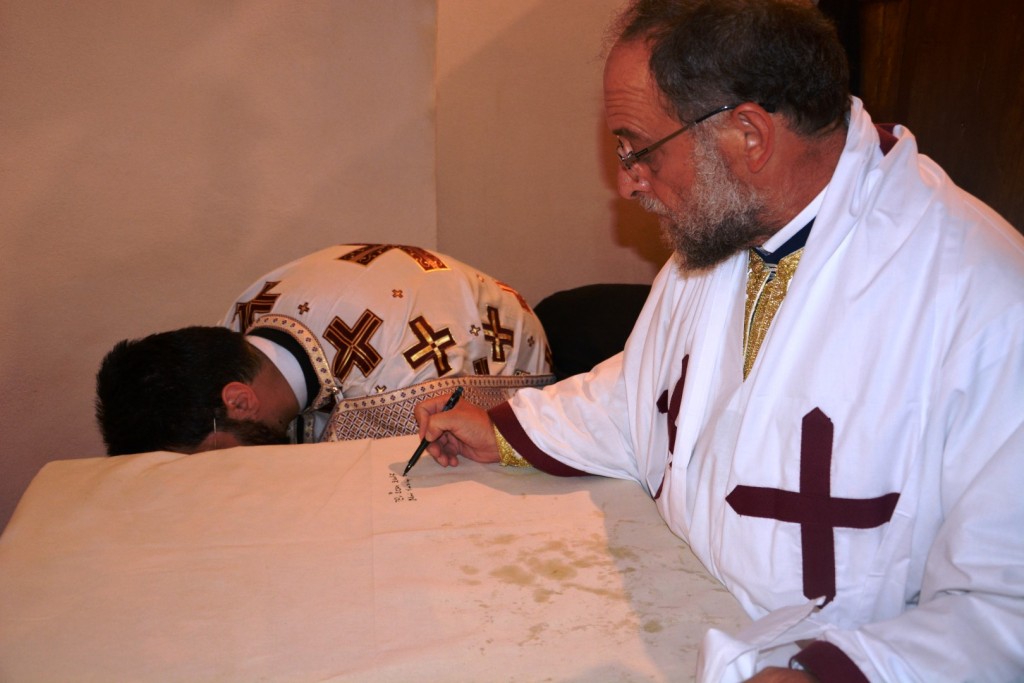 Στο τέλος ο Πανοσιολ. Αρχιμ. Κύριλλος Παπανθίμου, ως Πρόεδρος της Εκκλησιαστικής Επιτροπής, προσφώνησε και ευχαρίστησε τον Σεβασμιώτατο, την Προϊσταμένη της Αρχαιολογικής Υπηρεσίας κ. Μάνια Μιχαηλίδου και τους συνεργάτες της, τους συνεργάτες του και τους ευσεβείς δωρητές και ευχήθηκε σε όλους πλούσια τη χάρη της Υπεραγίας Θεοτόκου «Γαλακτοτροφούσης» και της Αγίας Μεγαλομάρτυρος Μαρίνης.