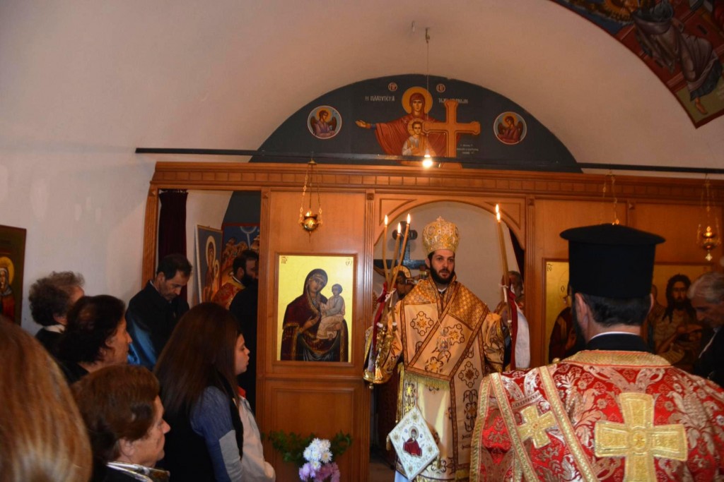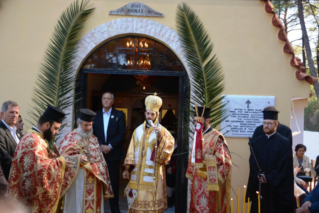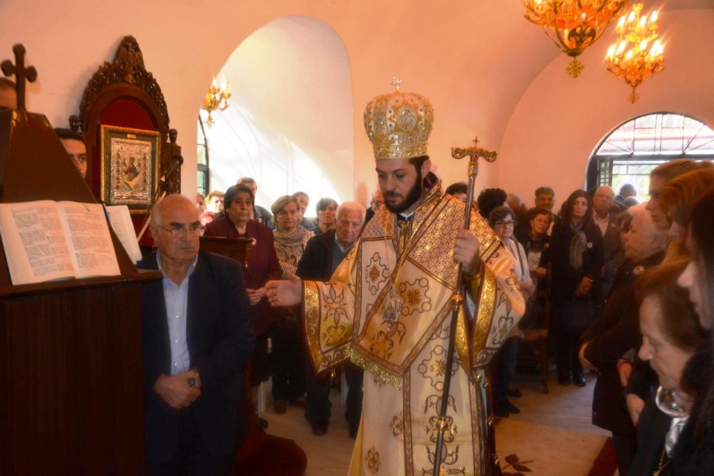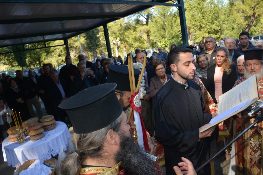 Το Σάββατο, 11 Νοεμβρίου 2017, ο Θεοφιλέστατος Επίσκοπος Ολύμπου κ. Κύριλλος χοροστάτησε του Όρθρου και τέλεσε την Θεία Λειτουργία στον πανηγυρίζοντα ιερό Ναό Αγίου Μεγαλομάρτυρος Μηνά Αρχιπόλεως. Κατά την Θεία Λειτουργία προέβη στην χειροθεσία σε Αναγνώστη του ευσεβούς νέου Σταύρου Χατζηιωάννου στον οποίο ευχήθηκε, τονίζοντας την αξία της διακονίας στο ιερό Αναλόγιο, να υπηρετήσει με φόβο Θεού, σεβασμό και πνεύμα μαθητείας την Εκκλησία, την οποία από μικρό παιδί αγάπησε.