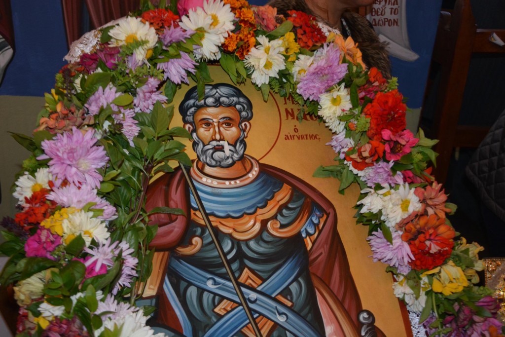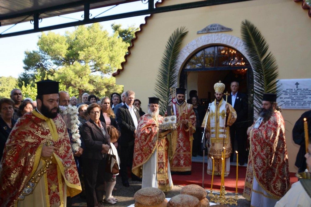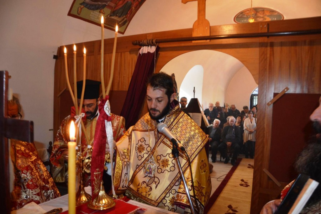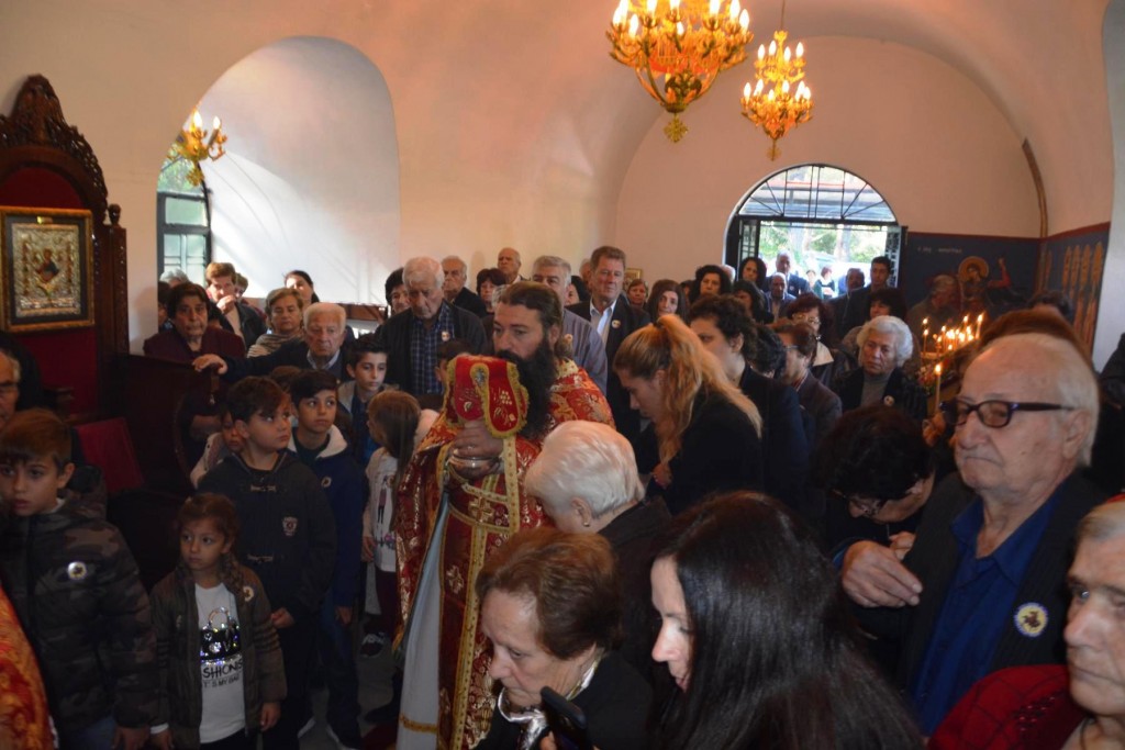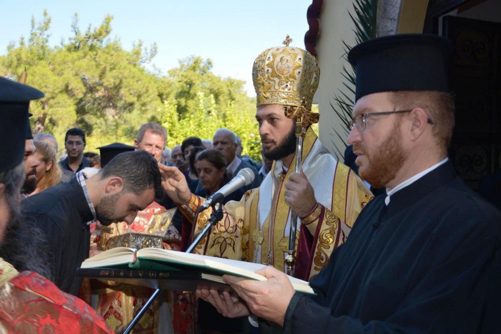 Το Σάββατο, 11 Νοεμβρίου 2017, ο Θεοφιλέστατος Επίσκοπος Ολύμπου κ. Κύριλλος χοροστάτησε του Όρθρου και τέλεσε την Θεία Λειτουργία στον πανηγυρίζοντα ιερό Ναό Αγίου Μεγαλομάρτυρος Μηνά Αρχιπόλεως. Κατά την Θεία Λειτουργία προέβη στην χειροθεσία σε Αναγνώστη του ευσεβούς νέου Σταύρου Χατζηιωάννου στον οποίο ευχήθηκε, τονίζοντας την αξία της διακονίας στο ιερό Αναλόγιο, να υπηρετήσει με φόβο Θεού, σεβασμό και πνεύμα μαθητείας την Εκκλησία, την οποία από μικρό παιδί αγάπησε.