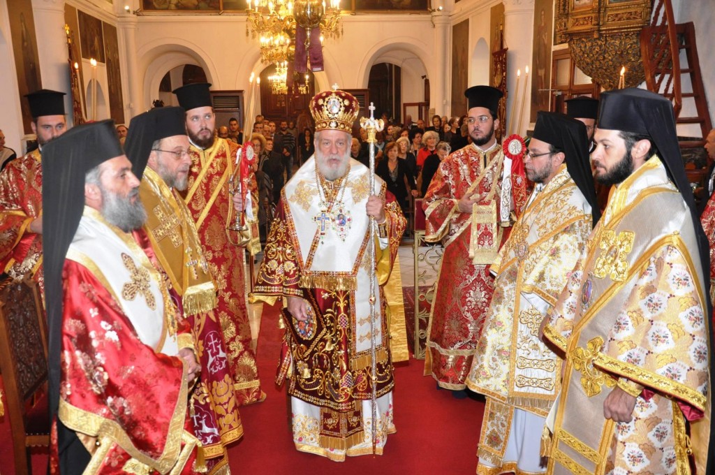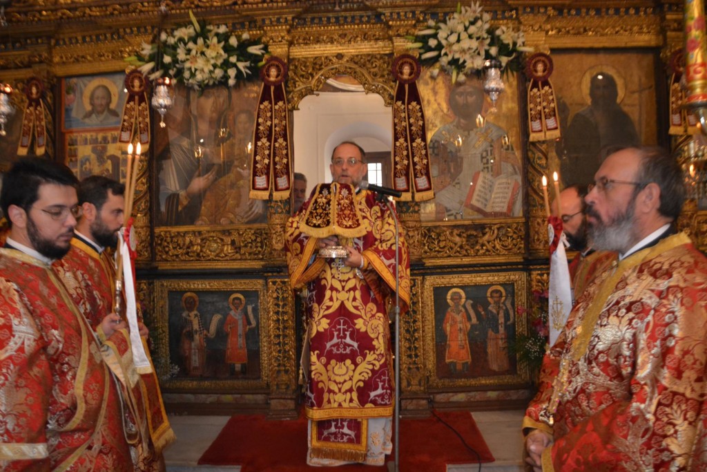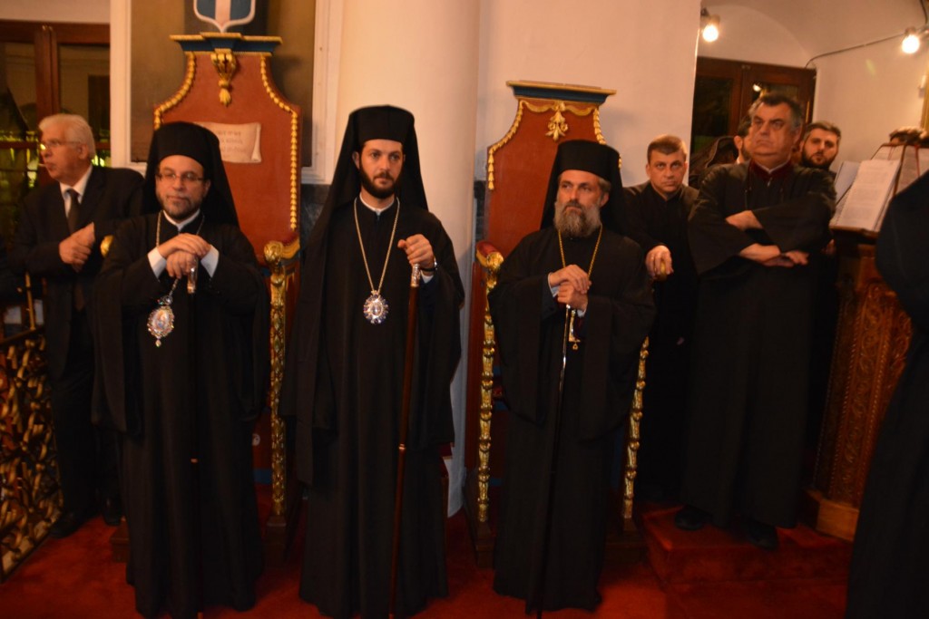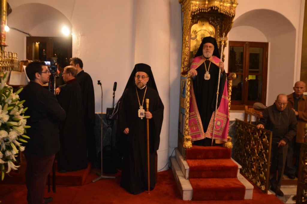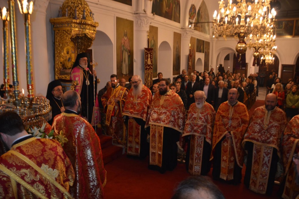 Το εσπέρας της Δευτέρας 13 Νοεμβρίου τελέσθηκε Πολυαρχιερατικός Εσπερινός, κατά τον οποίο εχοροστάτησε ο Σεβασμιώτατος Μητροπολίτης Σύρου κ. Δωρόθεος, συγχοροστατούντων του Σεβασμιωτάτου Ποιμενάρχου μας, του Σεβασμιωτάτου Μητροπολίτου Νουβίας κ. Σάββα και των Θεοφιλεστάτων Επισκόπω Στρατονικείας κ. Στεφάνου και Ολύμπου κ. Κυρίλλου, με τη συμμετοχή των Ιερέων της πόλεως και την παρουσία του Περιφερειάρχη Ν. Αιγαίου κ. Γ. Χατζημάρκου, του διατελέσαντος Περιφερειάρχου κ. Ιω. Μαχαιρίδη, των Δημάρχων Ρόδου κ. Φωτίου Χατζηδιάκου, Σύρου-Ερμούπολης κ. Γ, Μαραγκού και Μυκόνου κ. Κ. Κουκά, του Χωρικού Αντιπεριφερειάρχη Κυκλάδων κ. Γ. Λεονταρίτη, Δημοτικών Συμβούλων και πολλών πιστών, οι οποίοι προσήλθαν, παρά τις δυσμενείς καιρικές συνθήκες.