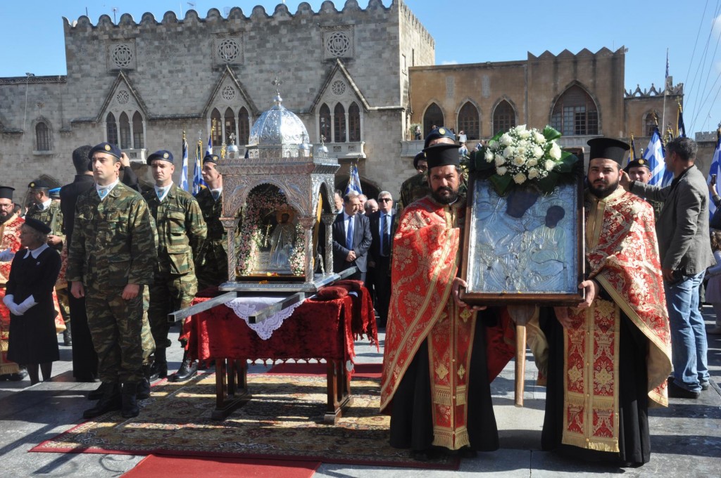 Υπό συνθήκες ακραίων καιρικών φαινομένων, η πόλη της Ρόδου εόρτασε τον Πολιούχο Άγιό της, τον Άγιο Νεομάρτυρα Κωνσταντίνο τον Υδραίο, στον Ιερό Ναό των Εισοδίων της Θεοτόκου, όπου ο Άγιος ετάφη και στον οποίο φυλάσσεται η ωλένη εκ της χειρός του, καταλειφθείσα από την μητέρα του Μαρίνα, όταν παρέλαβε το 1803 τα ιερά Λείψανά του και τα διακόμισε στην Ύδρα.