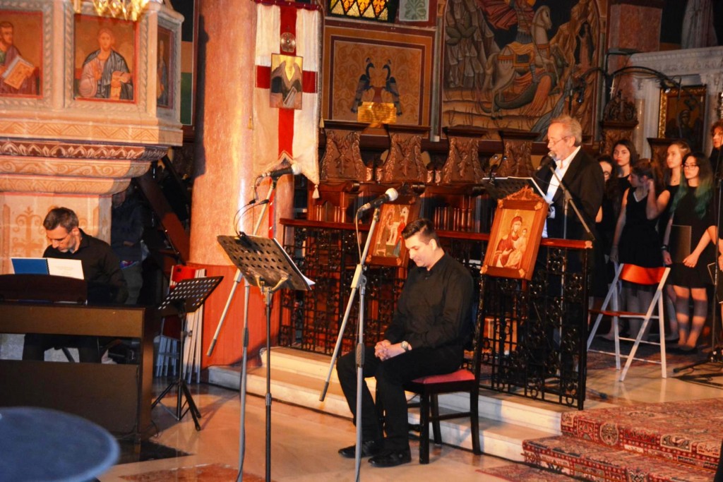 Ο μουσικός και καλλιτεχνικός διευθυντής των Εκπαιδευτηρίων «Ροδίων Παιδεία» Γιώργος Ξανθόπουλος έπαιξε πιάνο και έκανε τις εναρμονίσεις ενώ οι σολίστες Μαίρη Δούτση και Φωκίων Μπαρμπόκας απέδωσαν τις μονωδίες του έργου. Τα λυρικά μέρη του ορατορίου συμπλήρωσαν οι χορωδίες Νέων «Αρίων» και Ενηλίκων «Ροδίων Εμμέλεια» των Εκπαιδευτηρίων «Ροδίων Παιδεία».