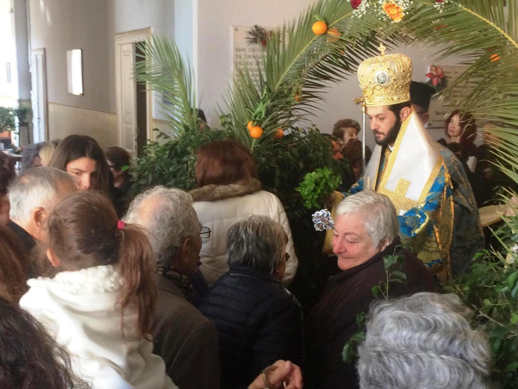 Την παραμονή της Εορτής στον Ιερό Ναό Αγίας Ειρήνης Ορφανοτροφείου Θηλέων Ρόδου τέλεσε την Θεία Λειτουργία και προέστη της Ακολουθίας του Αγιασμού ο Θεοφιλέστατος Επίσκοπος Ολύμπου κ. Κύριλλος.