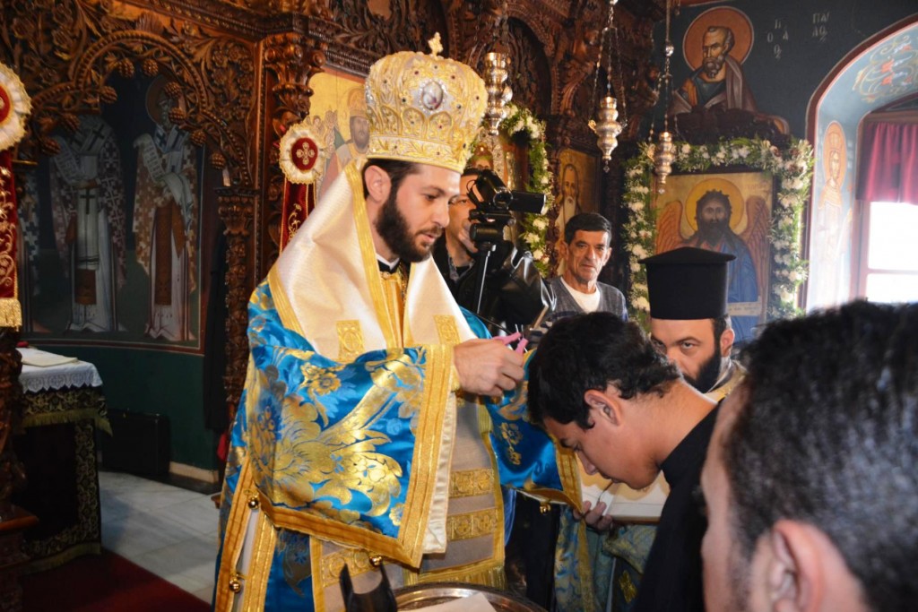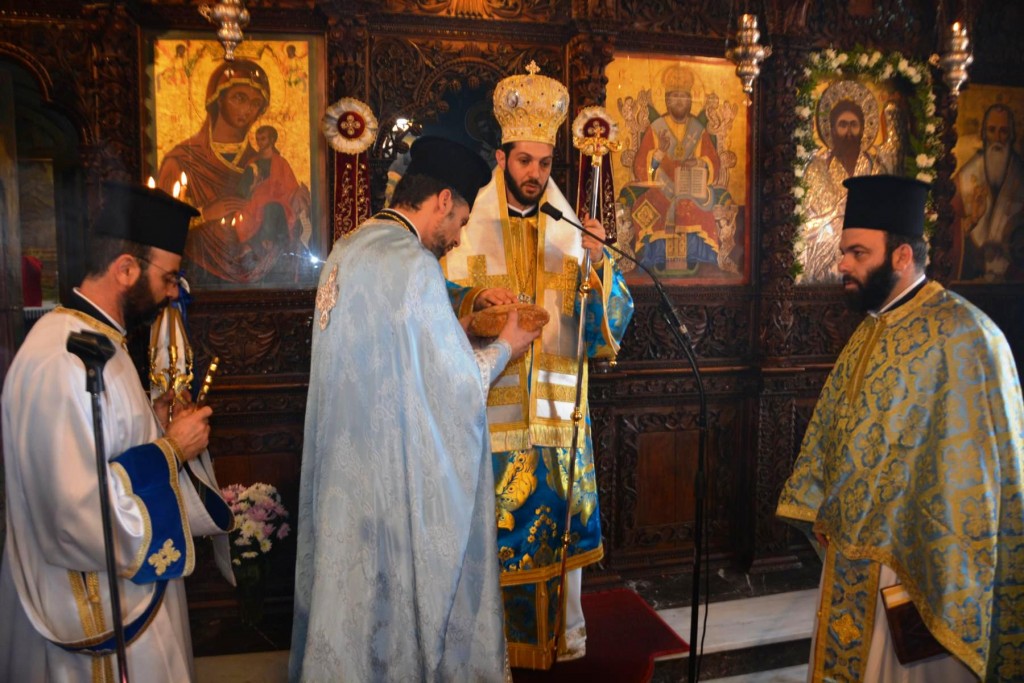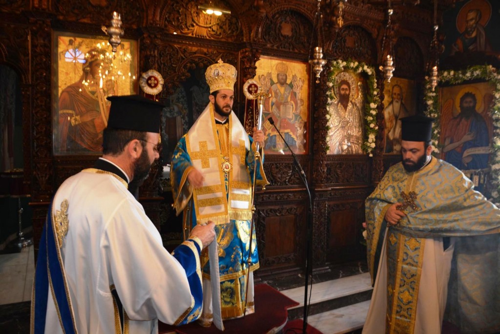 Ο Θεοφιλέστατος Επίσκοπος Ολύμπου κ. Κύριλλος χοροστάτησε του πανηγυρικού Εσπερινού στον ιερό Ναό Αγίου Ιωάννου της πόλεως καί την επαύριο χοροστάτησε του Όρθρου και τέλεσε την Θεία Λειτουργία στον Ναό του Αγίου στις Φάνες. Πρό της απολύσεως χειροθέτησε σε Αναγνώστη τον Γεώργιο Αρφαρά, ο οποίος με ζήλο διακονεί ως βοηθός το αναλόγιο του ως άνω ιερού Ναού.