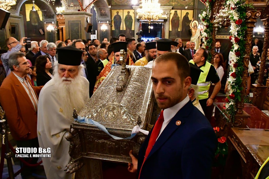Ο Σεβασμιώτατος Μητροπολίτης μας προέστη της μεγαλοπρεπούς λιτανείας της ιεράς Εικόνας και των τιμίων Λειψάνων του Αγίου και την επαύριο προέστη της Θείας Λειτουργίας, κατά την οποία κήρυξε τον θείο λόγο.