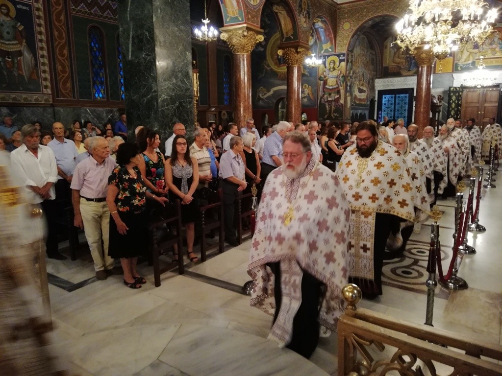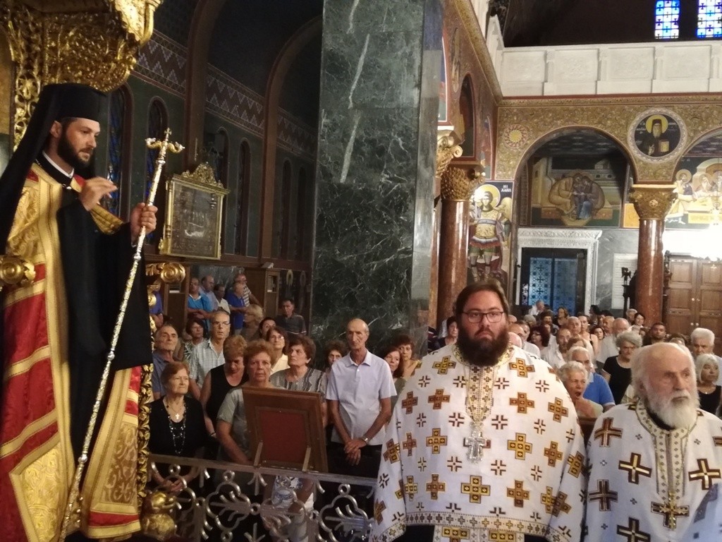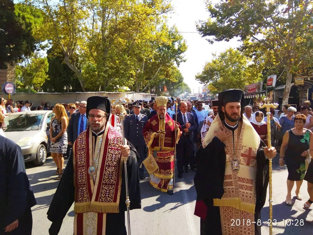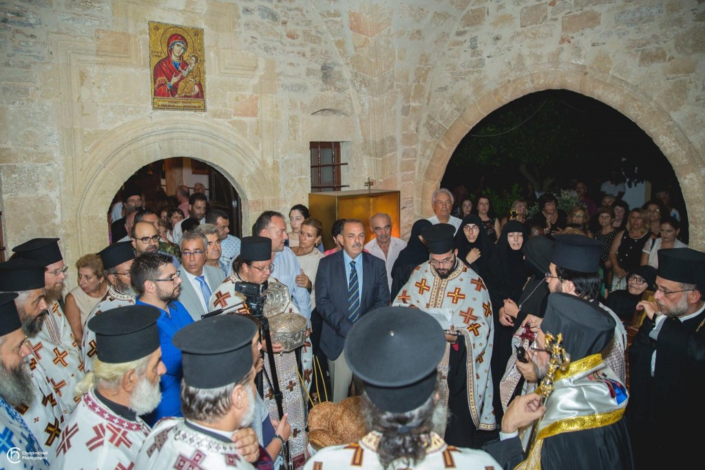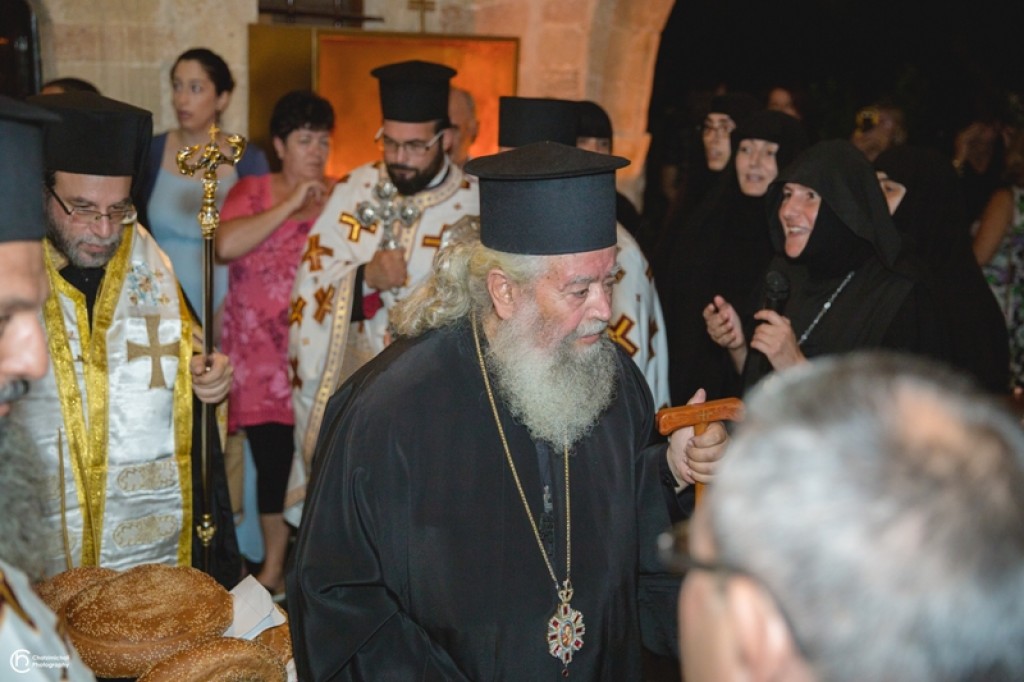 Την κυριώνυμη ημέρα της Εορτής ο Σεβασμιώτατος Μητροπολίτης μας χοροστάτησε του Όρθρου και προέστη της τρισαρχιερατικής Θείας Λειτουργίας, συλλειτουργούντων του Σεβ. αγίου Νουβίας και του Θεοφιλ. αγίου Ολύμπου στον ιερό Ναό Κοιμήσεως Θεοτόκου Κρεμαστής. Μετά το πέρας της Θείας Λειτουργίας, έλαβε χώρα μεγαλοπρεπής λιτανεία την οποία συνόδευσαν ο Δήμαρχος Ρόδου και το σύνολο των τοπικών πολιτικών και στρατιωτικών Αρχών και πλήθος προσκυνητών από όλο το νησί.