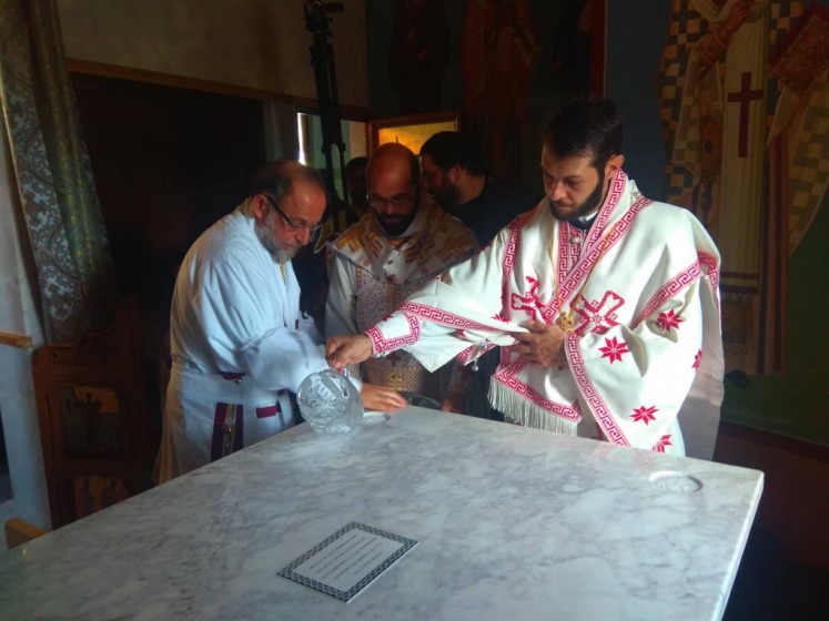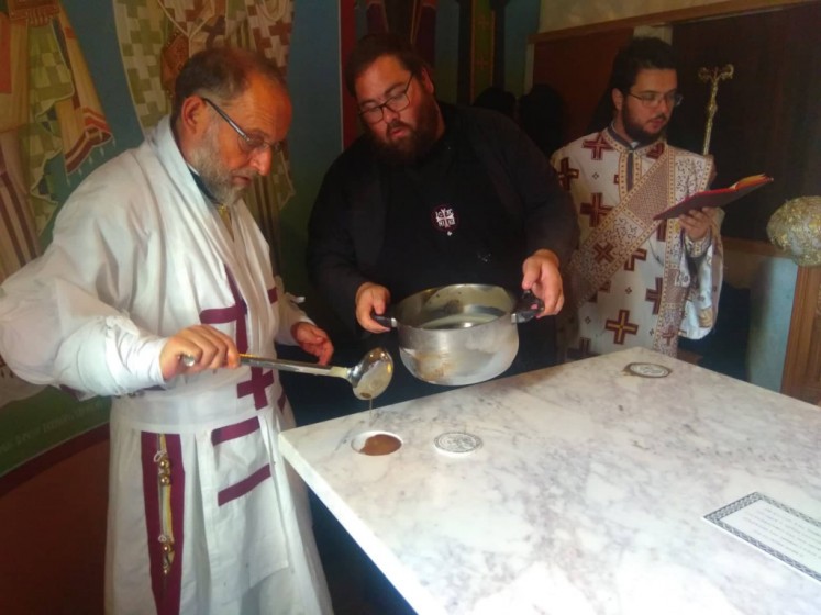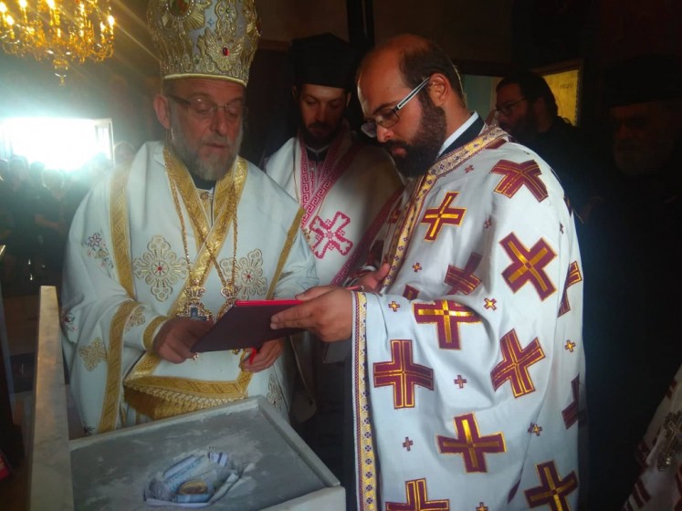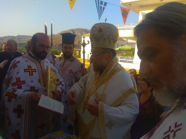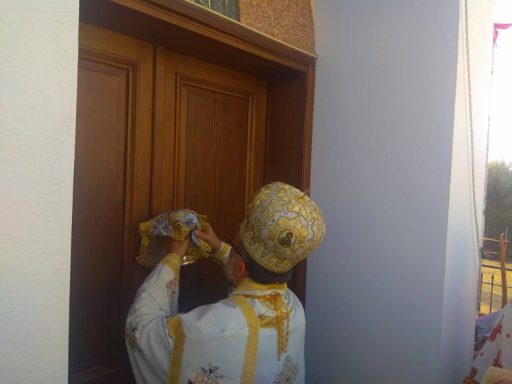 Της Ακολουθίας των Εγκαινίων προέστη ο Σεβασμιώτατος Ποιμενάρχης μας και συμμετείχαν ο Σεβασμιώτατος Μητροπολίτης Γάνου και Χώρας κ. Αμφιλόχιος και ο Θεοφιλέστατος Επίσκοπος Ολύμπου κ. Κύριλλος. Στο φυτό της αγίας Τραπέζης κατετέθησαν αποτμήματα τιμίων Λειψάνων των Αγίων: Ιερομαρτύρων Χαραλάμπους και Κυρίλλου του Λουκάρεως, Πατριάρχου Κωνσταντινουπόλεως και των Οσιομαρτύρων Πατέρων της Λαύρας του Οσίου Θεοδοσίου.