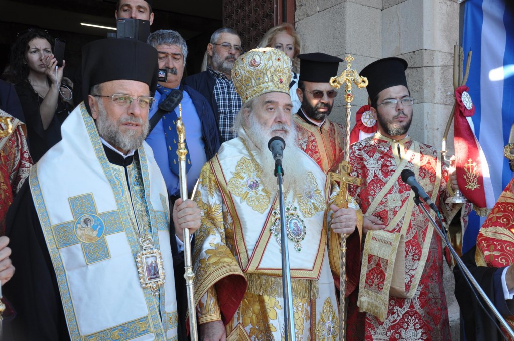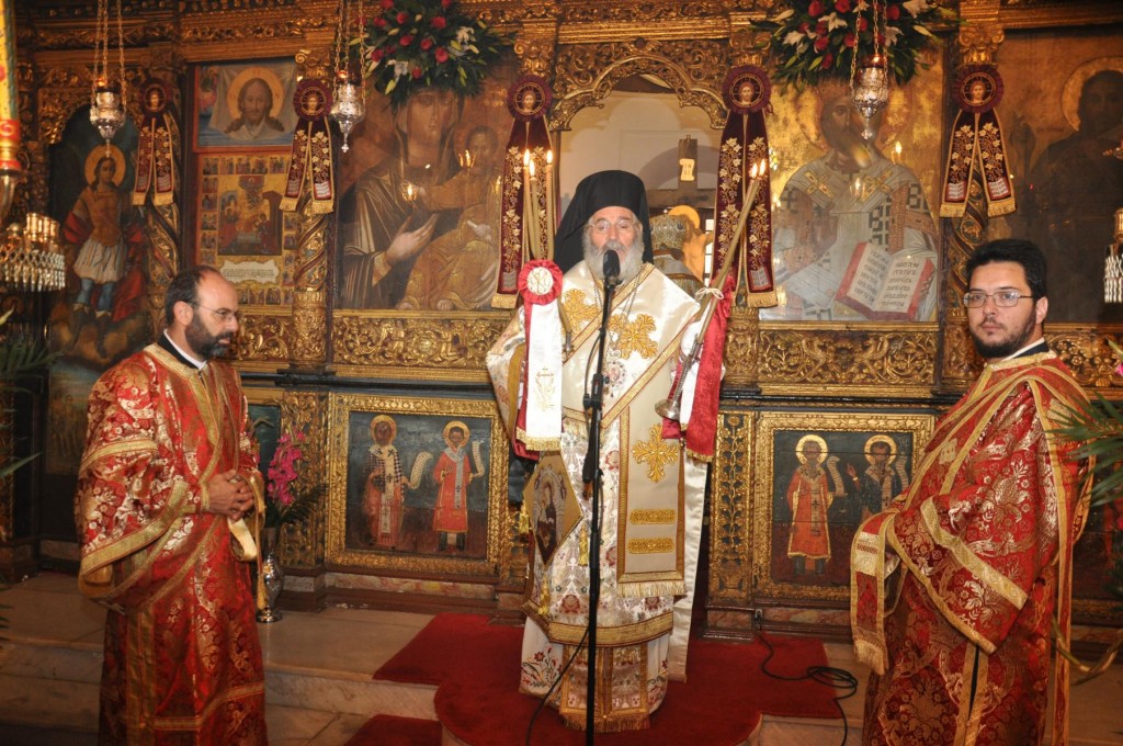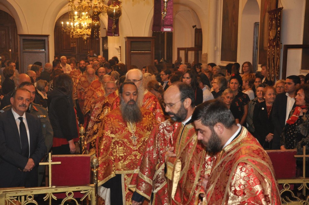 Της πανηγύρεως προέστη ο Σεβασμιώτατος Μητροπολίτης Σάμου και Ικαρίας κ. Ευσέβιος και συμμετείχαν οι Σεβασμιώτατοι Μητροπολίτες Λέρου, Καλύμνου και Αστυπαλαίας κ. Παϊσιος, Κώου και Νισύρου κ. Ναθαναήλ, Νουβίας κ. Σάββας και Σύμης, Τήλου Χάλκης και Καστελορίζου κ. Χρυσόστομος και οι Θεοφιλέστατοι Επίσκοποι Στρατονικείας κ. Στέφανος και Ολύμπου κ. Κύριλλος. Τον θείο λόγο κατά την Ακολουθία του πανηγυρικού Εσπερινού κήρυξε ο Σεβασμιώτατος άγιος Σάμου, ο οποίος αναφέρθηκε στο μαρτύριο του αγίου και το μήνυμα που η ομολογία του και ο υπέρ πίστεως και πατρίδος θάνατος του εκπέμπουν στην εποχή μας.