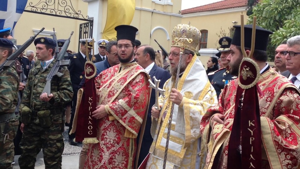 Την κυριώνυμη ημέρα της εορτής τελέστηκε Αρχιερατικό συλλείτουργο προεξάρχοντος του Σεβ. Ποιμενάρχου μας και συλλειτουργούντος του Σεβ. Μητροπολίτου Νουβίας κ. Σάββα. Ακολούθησε η Δοξολογία για την εορτή των Ενόπλων Δυνάμεων κατά την οποία ομίλησε ο Πρόεδρος του Συνδέσμου Εφέδρων Αξιωματικών Νομού Δωδ/σου κ. Πολύβιος Παυλίδης και ακολούθησε η καθιερωμένη Λιτανεία.