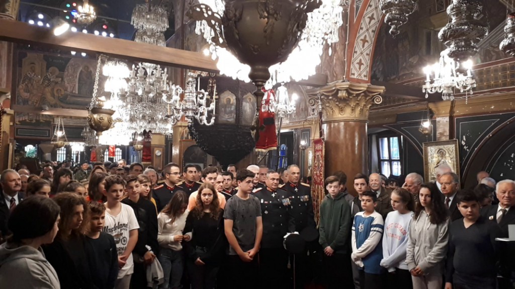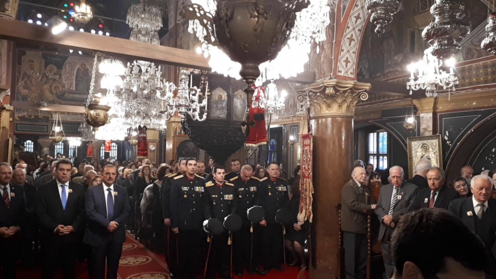 Μετά την παρατεθείσα δεξίωση στην αίθουσα του ιερού Ναού έλαβε χώρα η καθιερωμένη κατάθεση στεφάνων στο Βωμό της Πατρίδας.