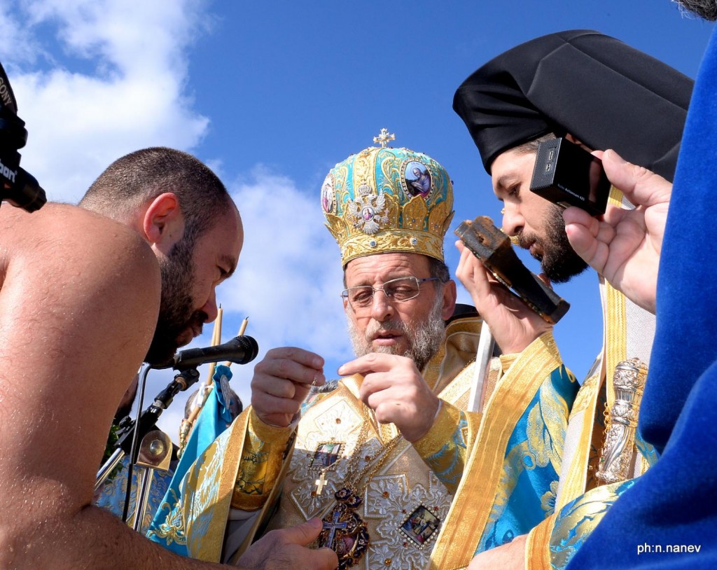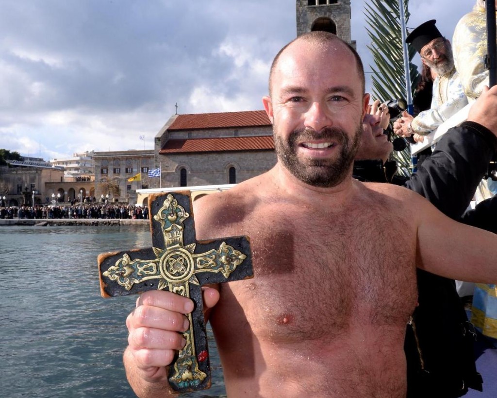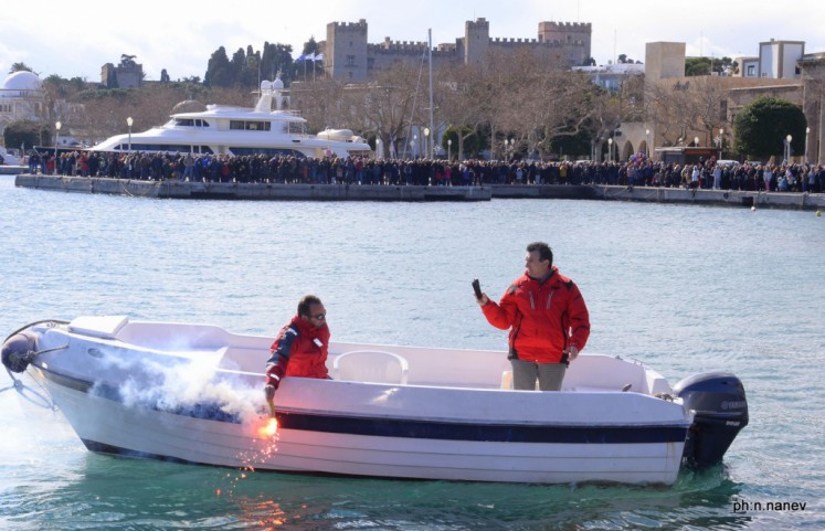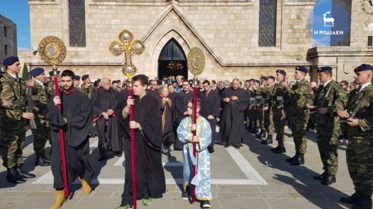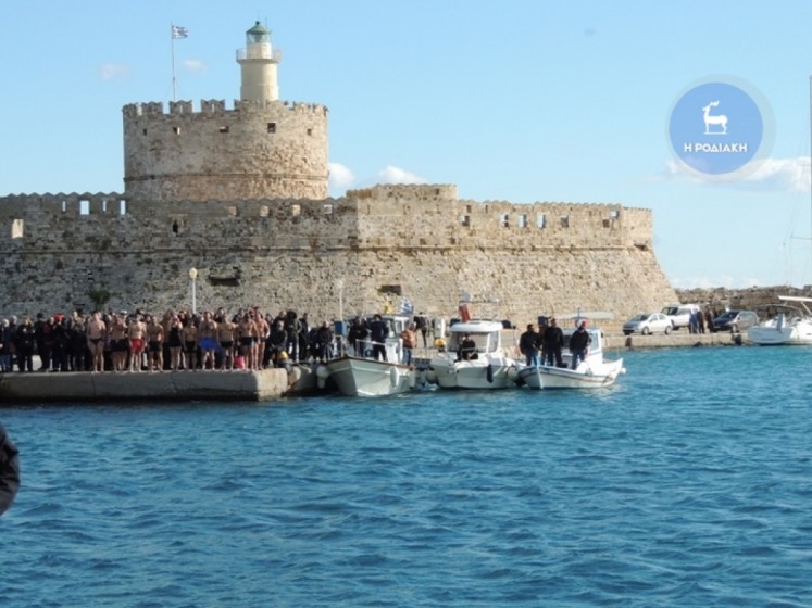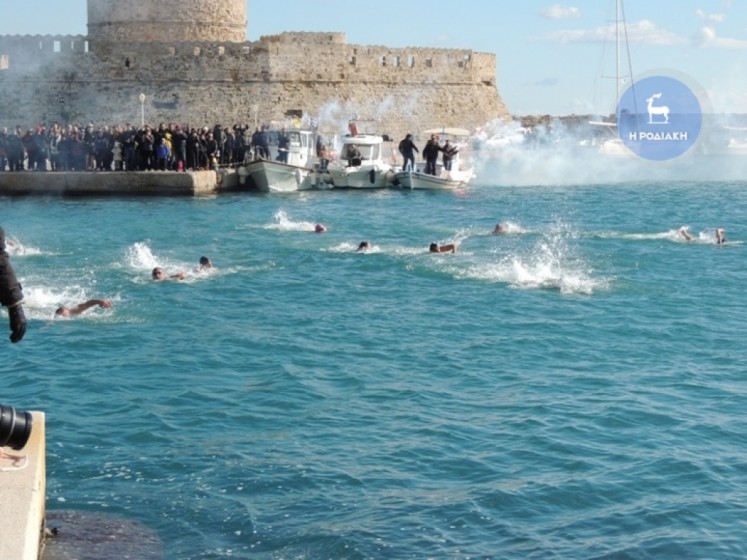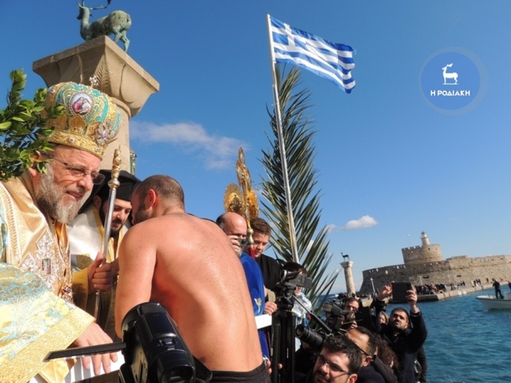 Την κυριώνυμη ημέρα της εορτής (6-1-2019) ο Σεβασμιώτατος προέστη της Αρχιερατικής Συλλειτουργίας (συλλειτουργούντων των Θεοφιλεστάτων Επισκόπων Γκούλου και Ανατολικής Ουγκάντας κ. Σιλβέστρου και Ολύμπου κ. Κυρίλλου) και της Ακολουθίας του Μεγάλου Αγιασμού των Θεοφανείων στον Καθεδρικό Ιερό Ναό του Ευαγγελισμού της Θεοτόκου και αμέσως μετά με τους Θεοφιλεστάτους αγίους Αρχιερείς, ιερό Κλήρο, τους εκπροσώπους των Αρχών μετέβη στον καθορισμένο τόπο, στο λιμάνι του Μανδρακίου, όπου έλαβε χώρα η τελετή της καταδύσεως του Τιμίου Σταυρού και του Αγιασμού των υδάτων. Αρκετοί ήταν οι τολμηροί που και φέτος έπεσαν στα παγωμένα νερά προκειμένου να ανασύρουν τον Τίμιο Σταυρό. Τον Σταυρό ανέσυρε από τα παγωμένα νερά o κ. Ευάγγελος Καριοφυλλάκης, στον οποίο ο Σεβασμιώτατος επέδωσε, κατά το έθος, χρυσό Σταυρό. Στη σύντομη προσλαλιά του αναφέρθηκε στο μήνυμα της Εορτής και ευχήθηκε τα δέοντα. Στη συνέχεια μετέβη στις εγκαταστάσεις του Ναυτικού Ομίλου Ρόδου για την καθιερωμένη ευλογία της Βασιλόπιτας του Ομίλου