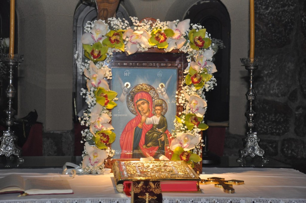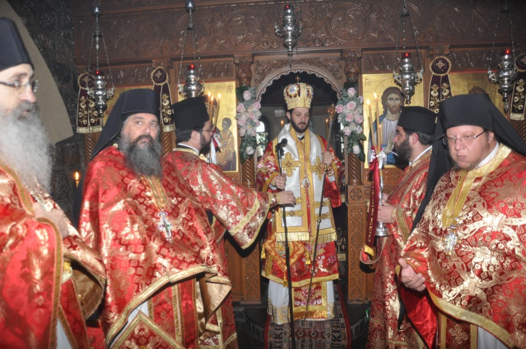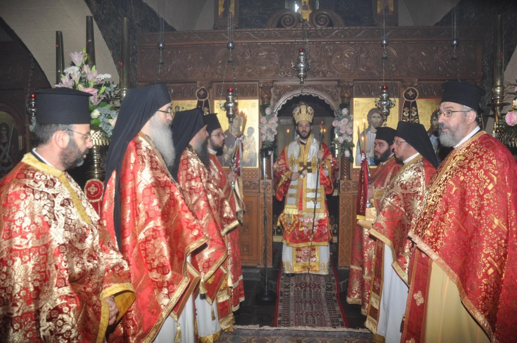Του πανηγυρικού Εσπερινού της Εορτής χοροστάτησε ο Σεβασμιώτατος Μητροπολίτης μας, ενώ την κυριώνυμη ημέρα χοροστάτησε του Όρθρου και προέστη της Θείας Λειτουργίας ο Θεοφιλέστατος Επίσκοπος Ολύμπου κ. Κύριλλος.
