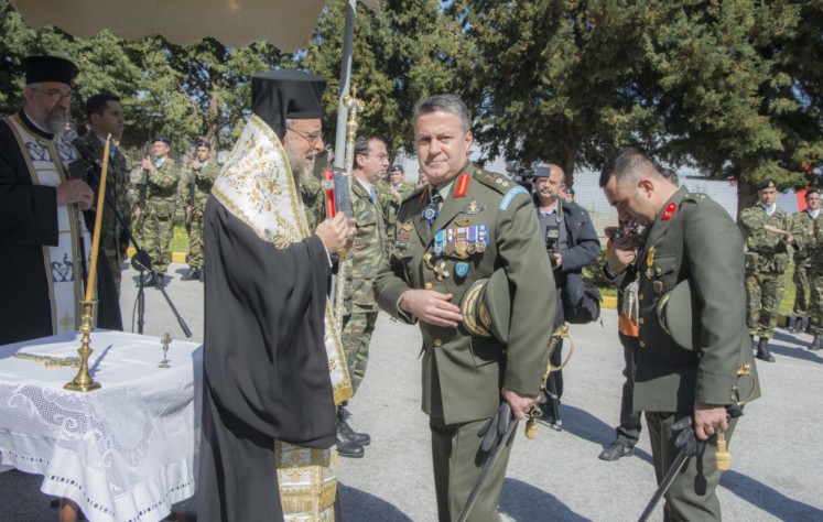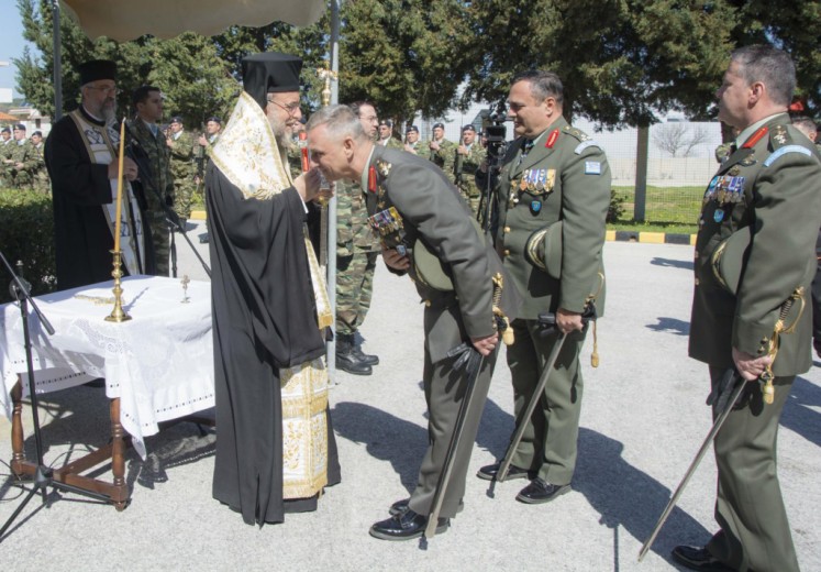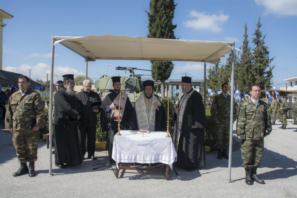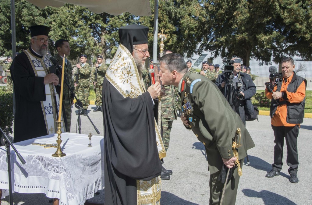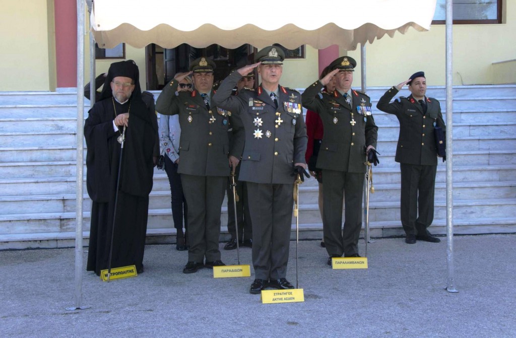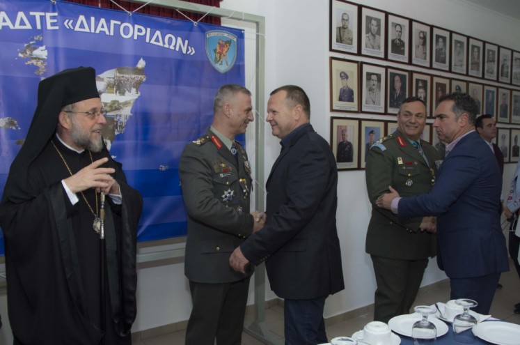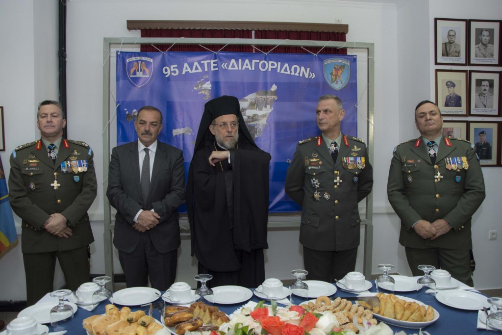 Της τελετής παραδόσεως-παραλαβής προέστη ο Σεβασμιώτατος Μητροπολίτης. Το βράδυ της προηγούμενης ἡμέρας (13 Μαρτίου) στην αἴθουσα της Λέσχης Ἀξιωματικών έλαβε χώρα η αποχαιρετιστήρια δεξίωση του απερχομένου Διοικητού της Διοικήσεως Αντιστρατήγου κ. Γρηγορίου Ρουμάνη, τον οποίο ο Σεβασμιώτατος, κατά τις γενόμενες αποχαιρετιστήριες προσφωνήσεις, ευχαρίστησε για την ωραία συνεργασία που υπήρξε μεταξύ τους εξήρε το ήθος του και την προσφορά του στον τόπο μας και του έδωσε ως αναμνηστικό δώρο Εικόνα (αντίγραφο της Εικόνας της Παναγίας Φιλερήμου) και κεραμικό πιάτο. Παράλληλα συνεχάρη και καλωσόρισε τον νέο Διοικητή με την ευχή για ἐπιτυχία στα υψηλά του καθήκοντα στην ευαίσθητη περιοχή ευθύνης του (Ρόδος, Καστελλόριζο, Σύμη, Κάρπαθος, Τήλος και Κάσος).