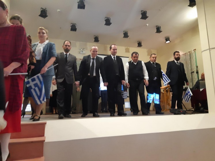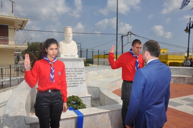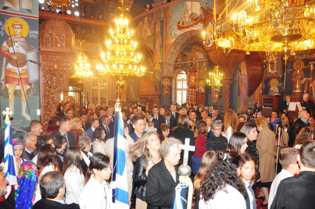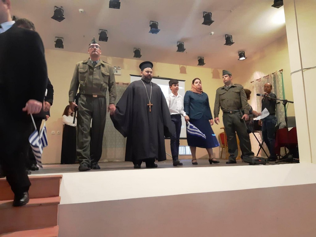 Μετά την επιστροφή στο ιερό Ναό και την δεξίωση στην παρακείμενη αίθουσα εκδηλώσεων της Ενορίας, στο Πάνω Σχολείο του Παραδεισίου, πού πρόσφατα ανακαινίστηκε, πραγματοποιήθηκε εκδήλωση, την οποία χαιρέτισαν ο Αρχιερατικός Προϊστάμενος της Ενορίας Παραδεισίου Θεοφιλέστατος Επίσκοπος Ολύμπου κ. Κύριλλος, ο Πρόεδρος της Δημοτικής Κοινότητας Παραδεισίου κ. Κυριαζής Μιχαήλογλου, ο Βουλευτής κ. Δημήτριος Γάκης ως εκπρόσωπος της Βουλής των Ελλήνων, ο εκπρόσωπος της Περιφέρειας Νοτίου Αιγαίου κ. Μιχαήλ Μπαριανάκης και την οποία παρουσίασε η κ. Αναστασία Χατζαντωνίου. Η εκδήλωση περιελάμβανε ομιλία της κ. Ευαγγελίας Παναή, Φιλολόγου-Δημοτικής Συμβούλου, Θεατρική παράσταση από το Λύκειο Ελληνίδων Ρόδου με τίτλο "Η Θυσία", και τραγούδια της Απελευθέρωσης των Δωδεκανήσων, τα οποία απέδωσε το Τμήμα Γυναικών της Μικτής χορωδίας του Δήμου Ρόδου υπό την Διεύθυνση του κ. Μιχάλη Καλαεντζή, ο κ. Ιωάννης Κλαδάκης (λύρα) και η κ. Χριστίνα Κόζα (τραγούδι).
