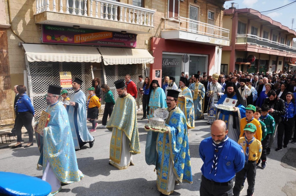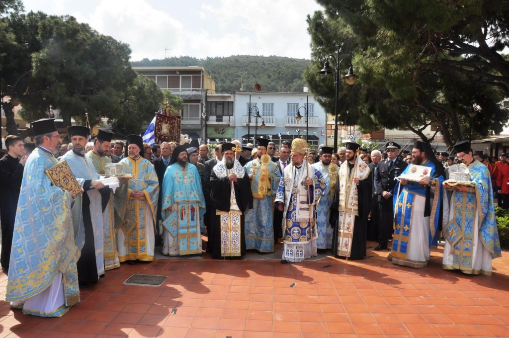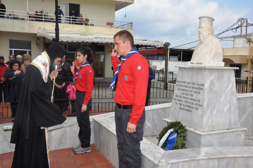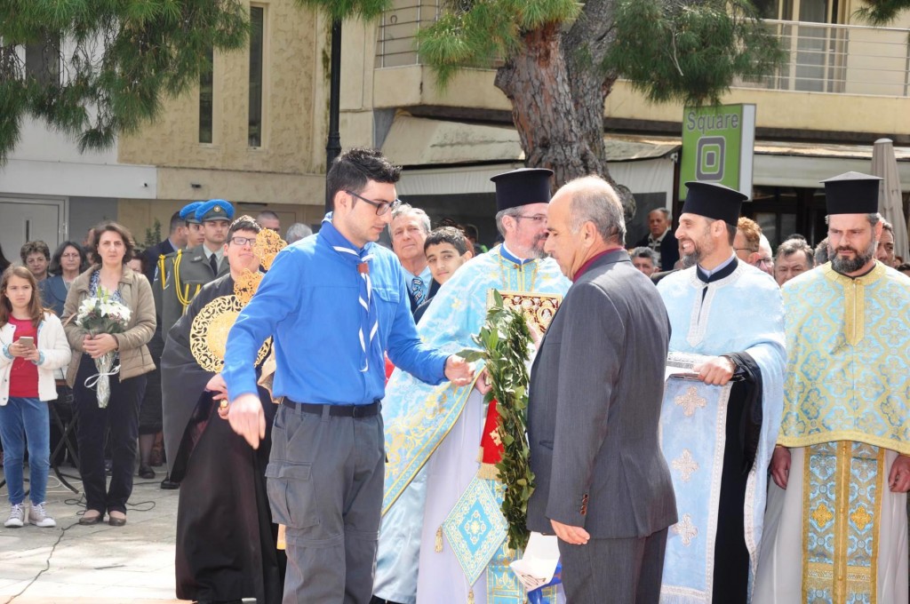 Με αφορμή την ενδοξη αυτή Επέτειο της τοπικής μας ιστορίας, στον Ενοριακό Ναό Αγίου Νικολάου Παραδεισίου την Κυριακή 7 Απριλίου τελέστηκε τρισαρχιερατική Θεία Λειτουργία, προεξάρχοντος του Σεβασμιωτάτου και συλλειτουργούντων των Θεοφιλεστάτων Επισκόπων Στρατονικείας κ. Στεφάνου και Ολύμπου κ. Κυρίλλου, κατά την οποία έλαβε χώρα το μνημόσυνο των Εθνομαρτύρων Ηρώων και των άλλων αγωνιστών εκείνης της ημέρας. Τον επιμνημόσυνο λόγο εκφώνησε ο Σεβασμιώτωτατος Μητροπολίτης μας, ενώ μήνυμα της Αυτού Θειοτάτης Παναγιότητος, του Οικουμενικού Πατριάρχου κ. κ. ΒΑΡΘΟΛΟΜΑΙΟΥ, ανέγνωσε ο Αρχιμ. Μελίτων Μπέλλος. Στη συνέχεια πραγματοποιήθηκε η λιτανεία της Εικόνος των εν Ρόδῳ Αγίων, των ιερών Λειψάνων των τοπικών μας Αγίων και της τιμίας Κάρας του Αγίου Παντελεήμονος. Η λιτανευτική πομπή σταμάτησε στον τόπο θυσίας του Παπα-Λουκά και Ανθούλας Ζερβού, όπου εψάλη Τρισάγιο και στη συνέχεια κατευθύνθηκε στην Πλατεία Παραδεισίου, όπου έλαβε χώρα η τελετή κατάθεσης στεφάνων στις προτομές τους και η ανάγνωση από τον κ. Σπύρο Κατσούρη ποιήματος δικής του συνθέσεως, σχετικό με την ημέρα, και εψάλη ο Εθνικός Ύμνος.