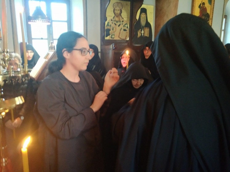 Το εσπέρας της Τρίτης 9 Απριλίου 2019 ο Σεβασμιώτατος Μητροπολίτης μας χοροστάτησε κατά την Ακολουθία του Μεγάλου Αποδείπνου στο Καθολικό της Ιεράς Μονής Υψενής και τέλεσε την μοναχική κουρά ρασοφορίας της δοκίμου της Ιεράς Μονής Ζηνοβίας, στην οποία έδωσε το όνομα Μελάνη, προς τιμήν της αειμνήστου Μοναχής Μελάνης Σκαρπαθιωτάκη, Αδελφής της Ιεράς Μονής Καλυβιανής (†23-8-2013). Στην Ακολουθία παρέστησαν ο Καθηγούμενος της Ιεράς Μονής Σταυρονικήτα Αρχιμ. π. Τύχων και ο Καθηγούμενος της Ιεράς Μονής Παναχράντου-Αγίου Παντελεήμονος Άνδρου π. Ευδόκιμος, ο οποίος και μετέφερε στο Μοναστήρι τήν τιμία Κάρα του Αγίου Παντελεήμονος για προσκύνημα, Κληρικοί της Μητροπόλεως μας, συγγενείς της νέας Μοναχής και πολλοί πιστοί.