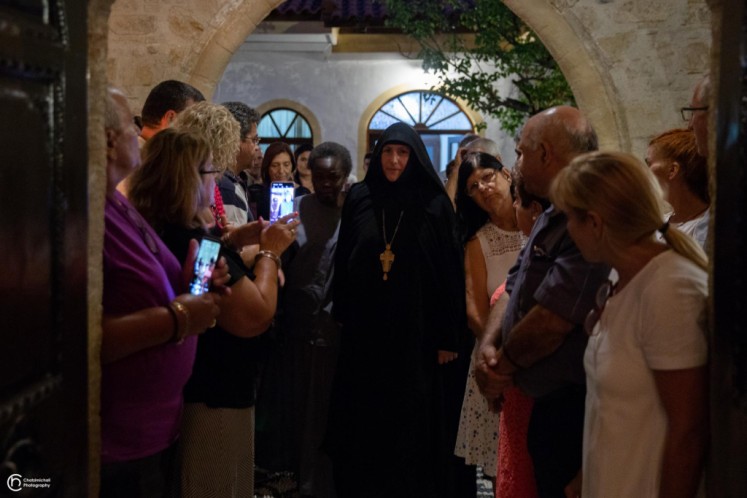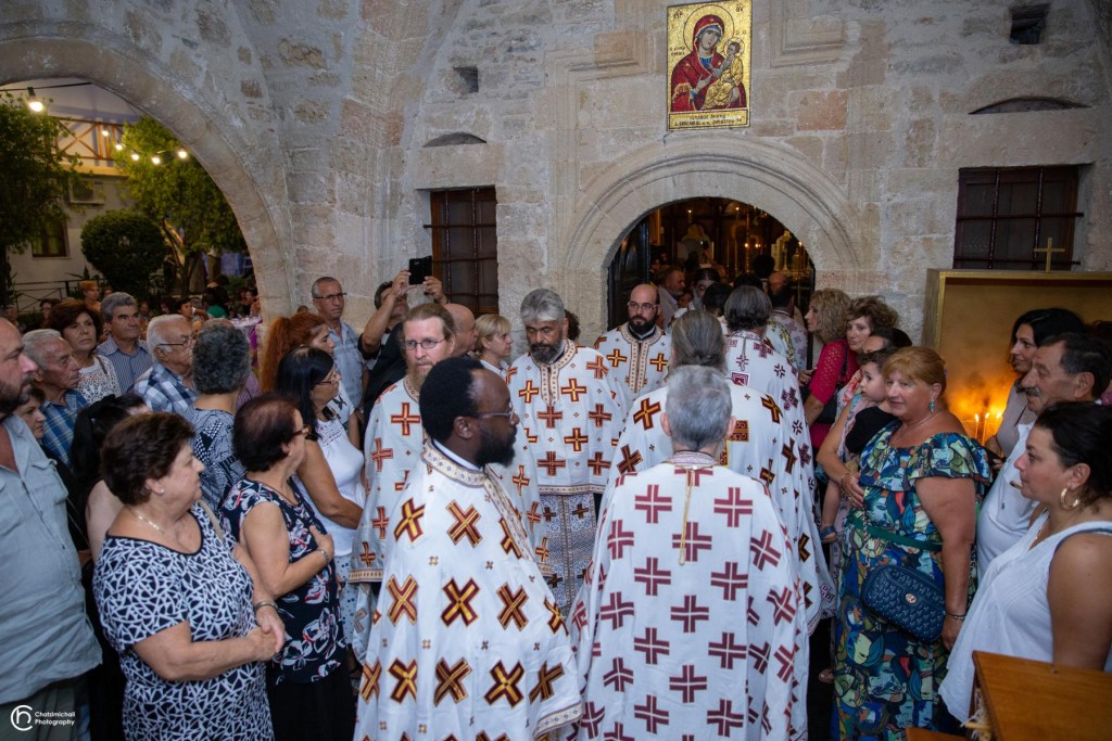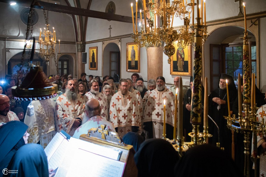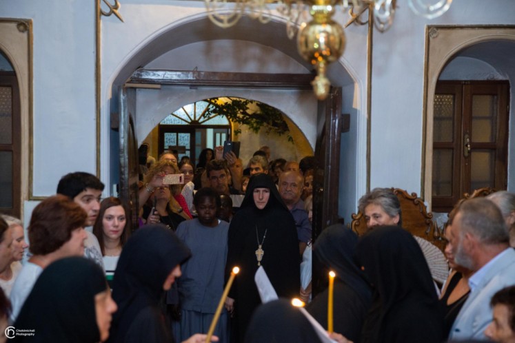Του πανηγυρικού Εσπερινού, την Πέμπτη 24 Αυγούστου) χοροστάτησε ο Σεβασμιώτατος Μητροπολίτης Γουινέας κ. Γεώργιος και παρέστησαν οι Σεβασμιώτατοι Μητροπολίτες Ειρηνουπόλεως κ. Δημήτριος, Γάνου και Χώρας κ. Αμφιλόχιος και Νουβίας κ. Σάββας, καθώς και ο Σεβασμιώτατος Ποιμενάρχης μας, ο ο οποίος και προέβη στην κουρά σε ρασοφόρο Μοναχή της Δοκίμου Θέκλας Auma από την Ουγκάντα, στην οποία έδωσε το όνομα Νεκταρία.