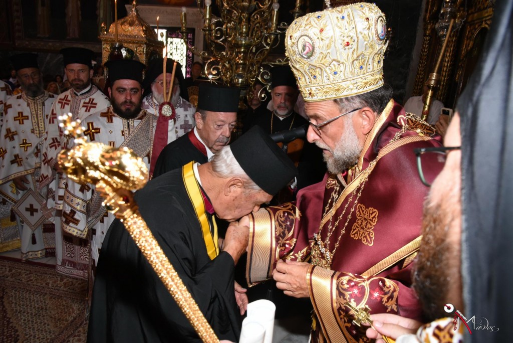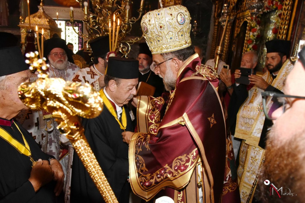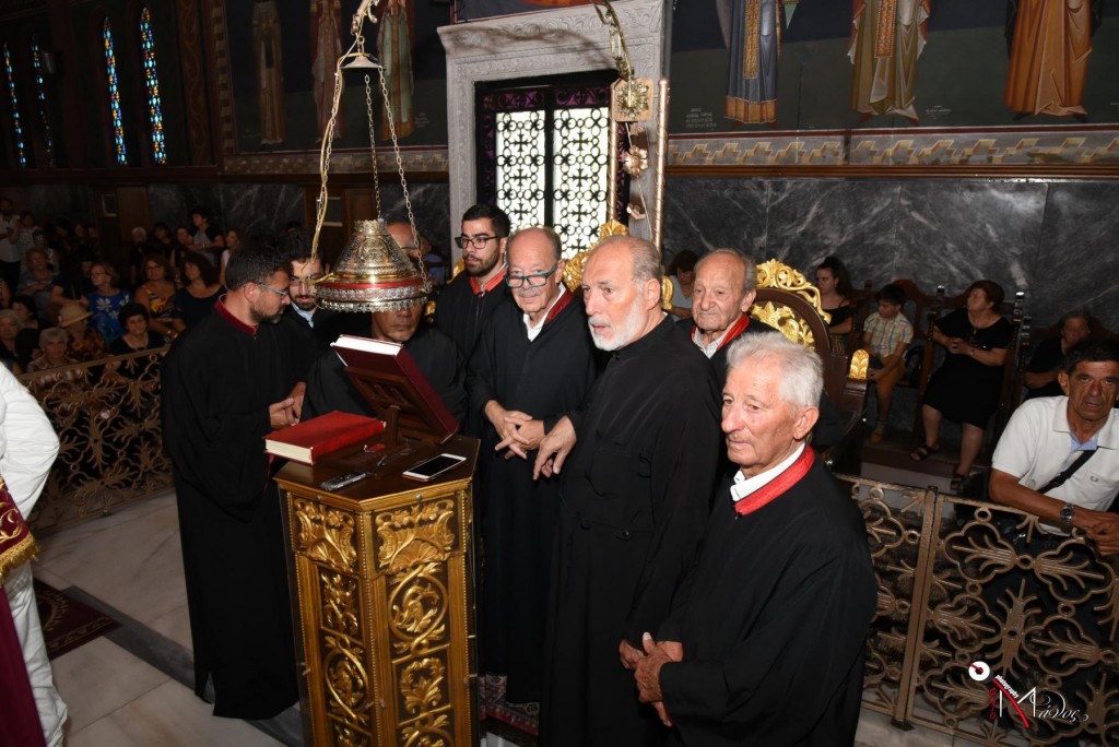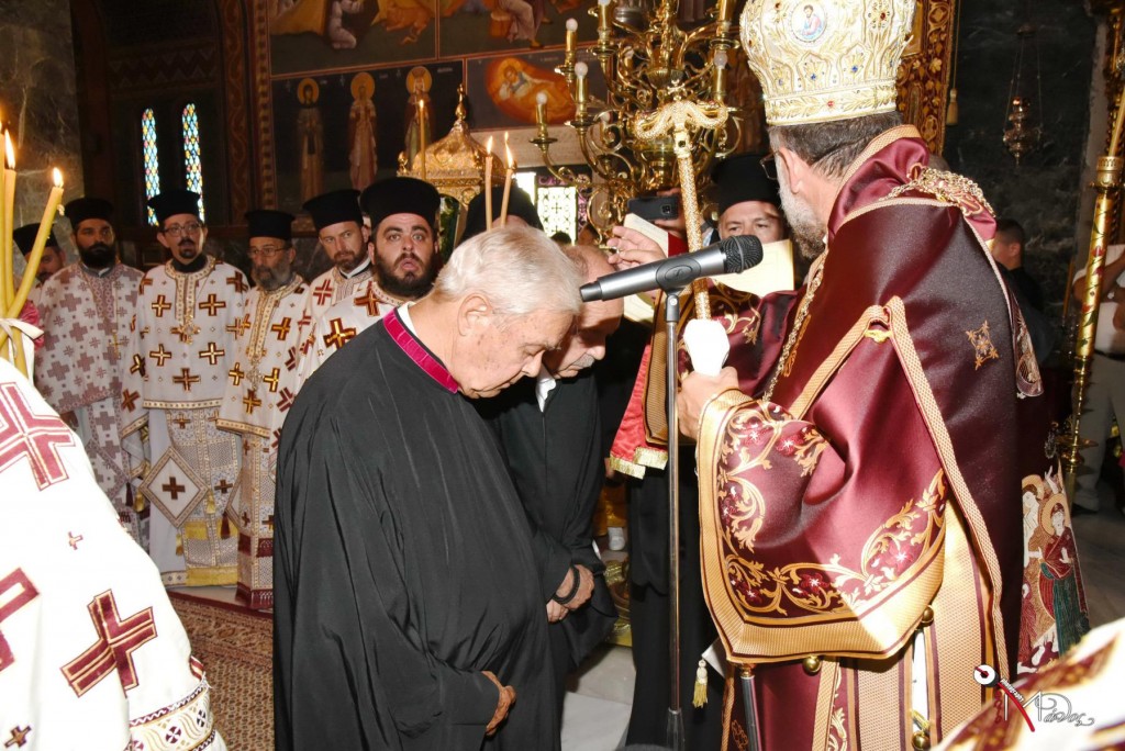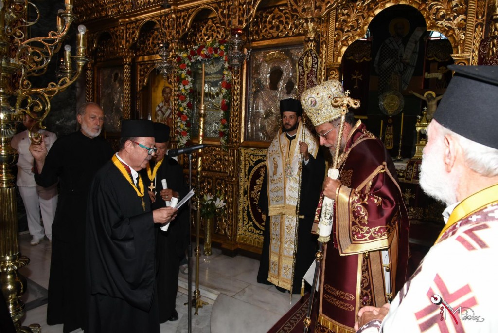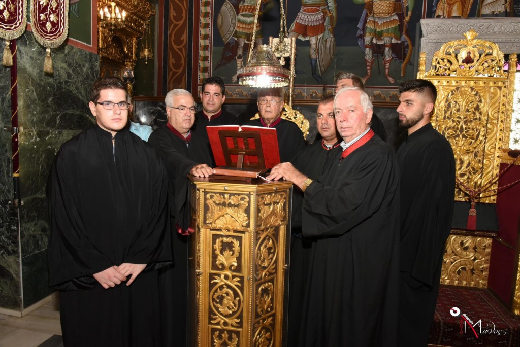 Ο Σεβασμιώτατος Μητροπολίτης μας προ της απολύσεως της Θείας Λειτουργίας προεχείρισε σε Πρωτοψάλτη και Λαμπαδάριο της Ιεράς Μητροπόλεως Ρόδου τους κ. κ. Κωνσταντίνο Κουκιά και Μιχαήλ Παπαοικονόμου, Πρωτοψάλτη και Λαμπαδάριο αντίστοιχα του ιερού Ναού. Στην προσφώνηση του εξήρε το ιεροψαλτικό ήθος τους, εξέφρασε προς αυτούς την ευαρέσκεια της Εκκλησίας για την πολυετή προσφορά τους στο Αναλόγιο, τις προσωπικές του ευχαριστίες για την επι σειρά ετών καλή συνεργασία και απέδωσε σ᾿ αυτούς τον Χρυσού Σταυρό των εν Δωδεκανήσω Μητροπόλεων του πανσέπτου Οικουμενικού Θρόνου. Αντιφώνησαν ἀμφότεροι εκφράζοντας τις ευχαριστίες τους προς την Εκκλησία και το πρόσωπο του Σεβασμιωτάτου. Επίσης εξέφρασε την ευαρέσκεια και τον έπαινο της Εκκλησίας στον συνταξιοδοτηθέντα Εφημέριο της Ενορίας π. Μιχαήλ Μάτση, τον ευχαρίστησε για την πολυετή καλή και ευδόκιμη διακονία του και επέδωσε σε αυτόν τον χρυσού Σταυρό των Μητροπόλεων της Δωδεκανήσου.