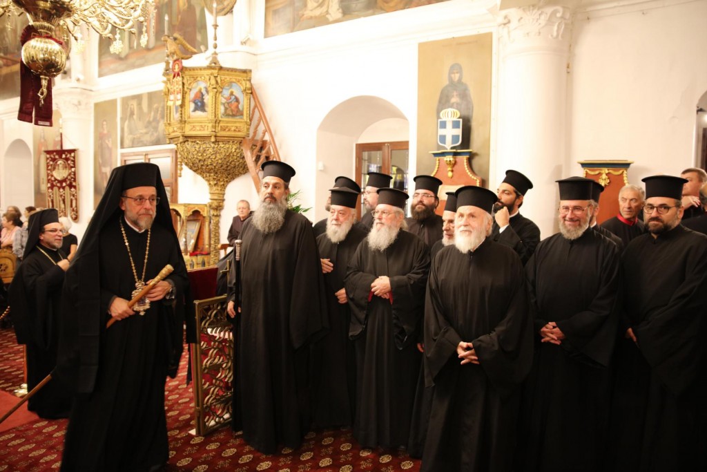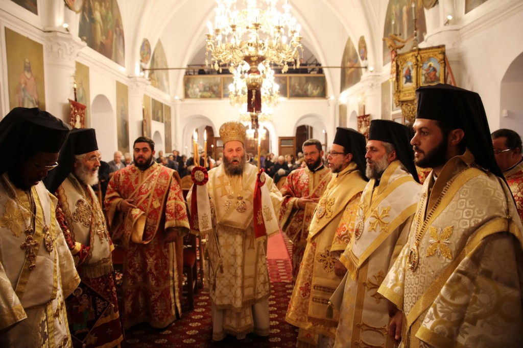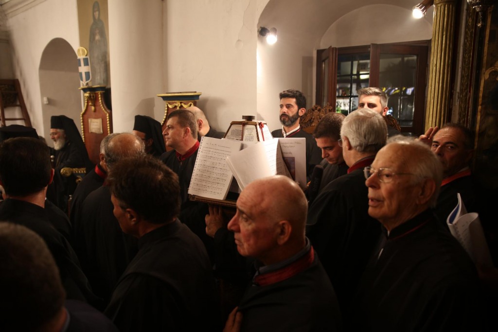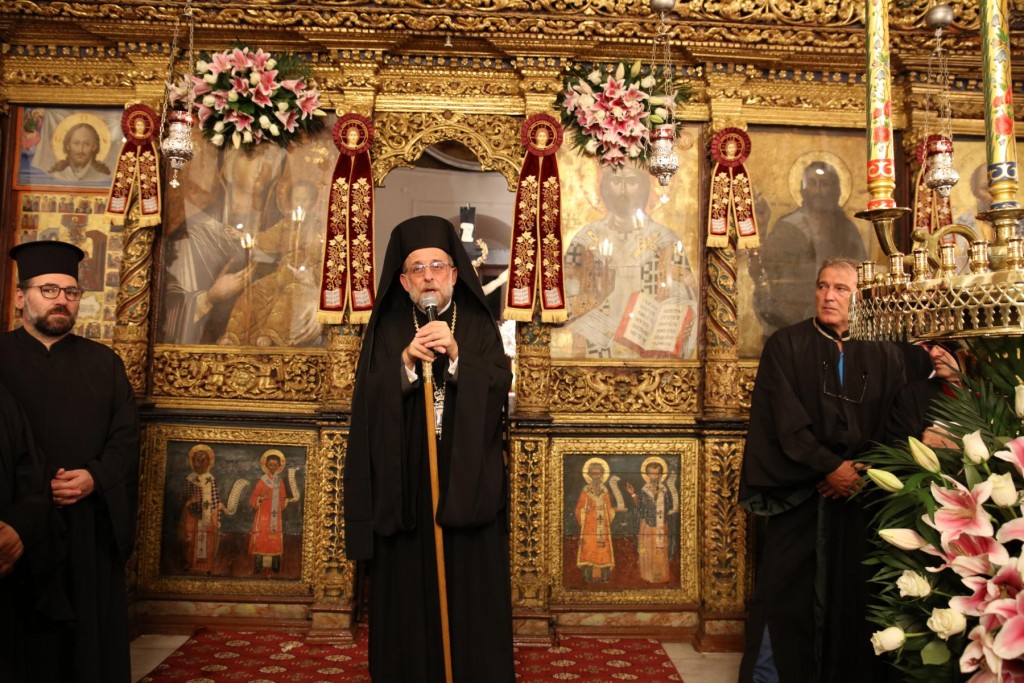 Του Πανηγυρικού Εσπερινού, χοροστάτησε ο Σεβασμιώτατος Μητροπολίτης Ιωαννίνων κ. Μάξιμος, συγχοροστατούντων των Σεβασμιωτάτων Μητροπολιτών, Λέρου, Καλύμνου και Αστυπάλαιας κ. Παϊσίου και Νουβίας κ. Σάββα, των Θεοφιλεστάτων Επισκόπων Γκούλου και Ανατολικής Ουγκάντας κ. Σιλβέστρου, Στρατονικείας κ. Στεφάνου, και Ολύμπου κ. Κυρίλλου και του Σεβασμιωτάτου Ποιμενάρχου μας, ο οποίος προ της Απολύσεως προσφώνησε με θερμά λόγια τους αγίους Αρχιερείς εκφράζοντας την προσωπική του ευγνωμοσύνη και τις ευχαριστίες της τοπικής μας Εκκλησίας για τη συμμετοχή τους στην Πανήγυρη του Πολιούχου μας. Ακολούθησε η εμπνευσμένη ομιλία του Σεβασμιωτάτου αγίου Ιωαννίνων, ο οποίος αναφέρθηκε στην προσφορά των Νεομαρτύρων του Γένους μας και τόνισε την ανάγκη διαφυλάξεως, καλλιέργειας και παράδοσης στις επόμενες γενιές της Ορθοδόξου Εκκλησιαστικής και πολιτιστικής μας αυτοσυνειδησίας.