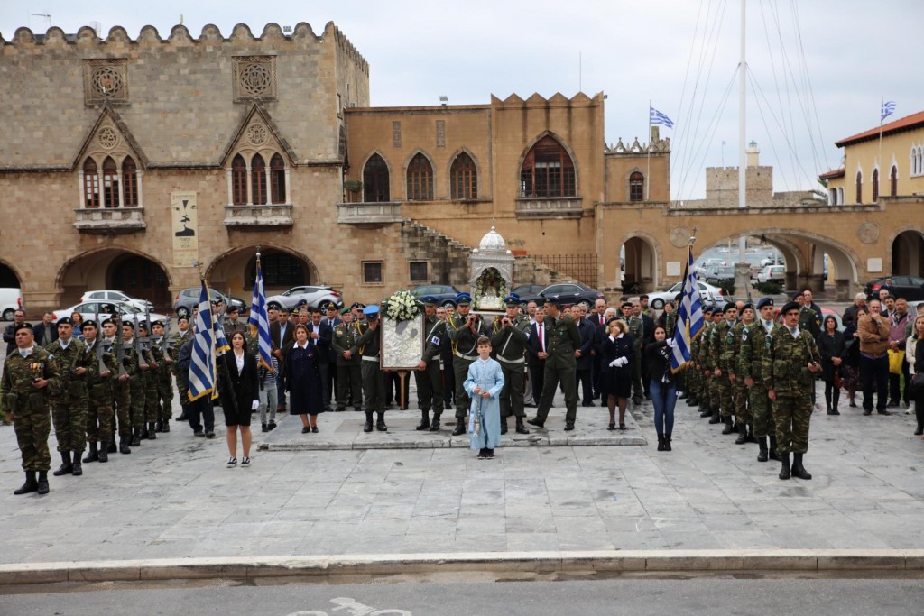 Το παρών στις εκδηλώσεις έδωσαν, ο περιφερειάρχης Νοτίου Αιγαίου κ. Γιώργος Χατζημάρκος, ο Δήμαρχος Ρόδου κ. Αντώνης Καμπουράκης, εκπρόσωποι του πολιτικού κόσμου, των Στρατιωτικών Αρχών και των Σωμάτων Ασφαλείας.