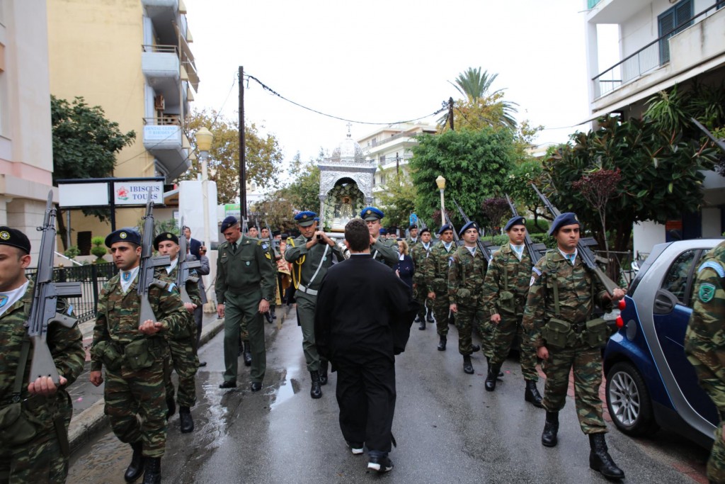 Με θρησκευτική κατάνυξη και ιδιαίτερη λαμπρότητα, παρουσία πλήθους πιστών, παρά τις δυσμενείς καιρικές συνθήκες, εορτάστηκε κι εφέτος η μνήμη του Πολιούχου της πόλεως μας, Αγίου Νεομάρτυρα Κωνσταντίνου του Υδραίου, στο ιερό Ναό Εισοδίων της Θεοτόκου Νεοχωρίου στον τόπο όπου ετάφη μετά το μαρτύριο του και όπου σήμερα θησαυρίζεται το τίμιο Λείψανο του και η πλάκα του τάφου του.