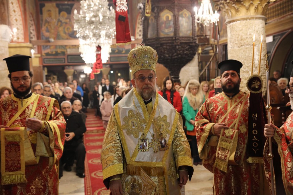 Στον Μητροπολιτικό ιερό Ναό Εισοδίων της Θεοτόκου ο Σεβασμιώτατος Μητροπολίτης μας προέστη της ιεράς Αγρυπνίας και της Θείας Λειτουργίας της Εορτής των Χριστουγέννων. Η αγρυπνία άρχισε στις 20:00 το βράδυ της Τρίτης και ολοκληρώθηκε στη 00:45 μετά τα μεσάνυκτα.