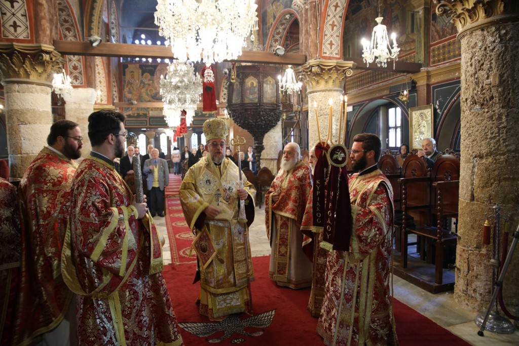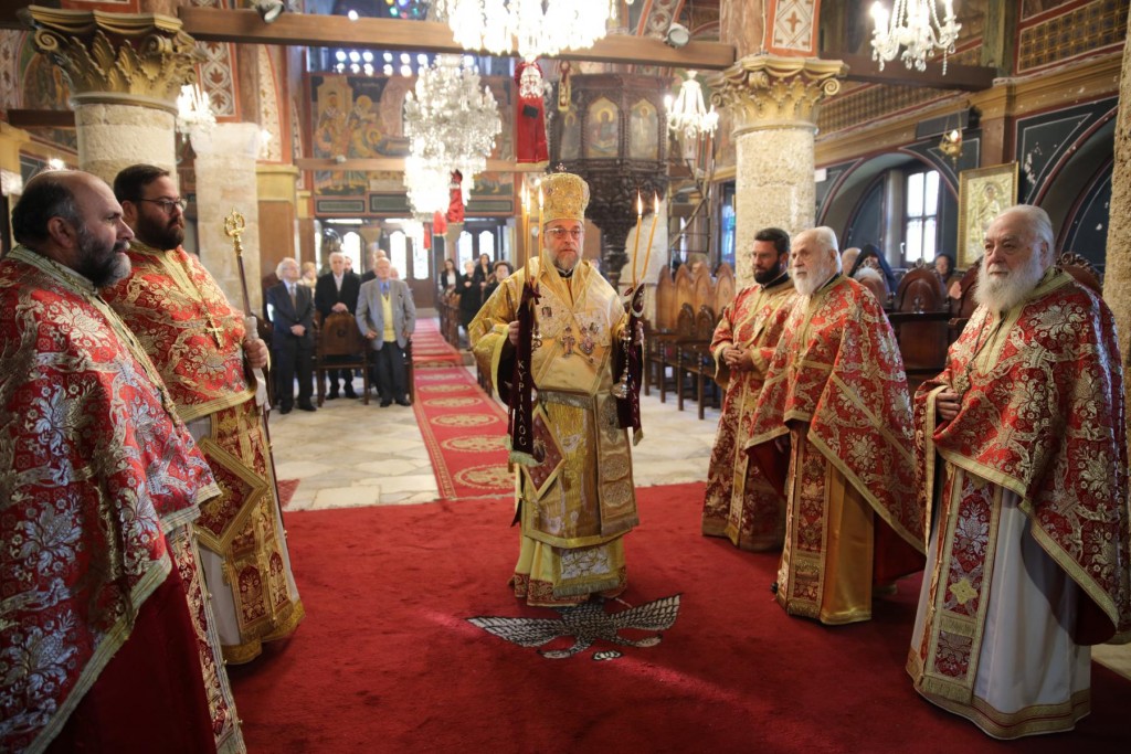 Την ημέρα της Εορτής χοροστάτησε του Όρθρου, τέλεσε την Θεία Λειτουργία και προέστη της καθιερωμένης Δοξολογίας στον ιερό Μητροπολιτικό μας Ναό.