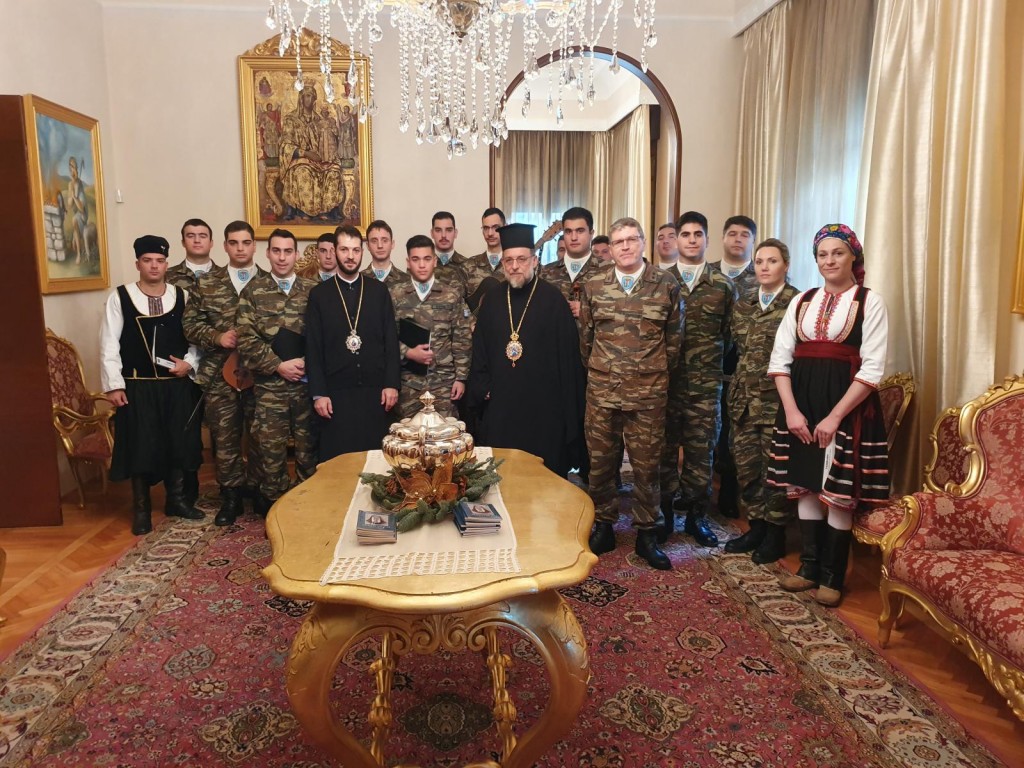 Αργότερα μετέβη στο χώρο, όπου η 95 ΑΔΤΕ παρέθεσε δεξίωση για την υποδοχή του Νέου Έτους, ευλόγησε την Αγιοβασιλόπιτα της Μεραρχίας και ευχήθηκε τα δέοντα στους υπηρετούντες την πατρίδα στο νησί μας.