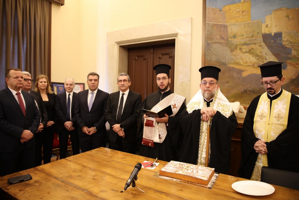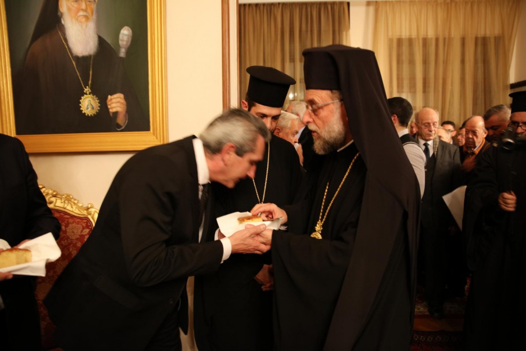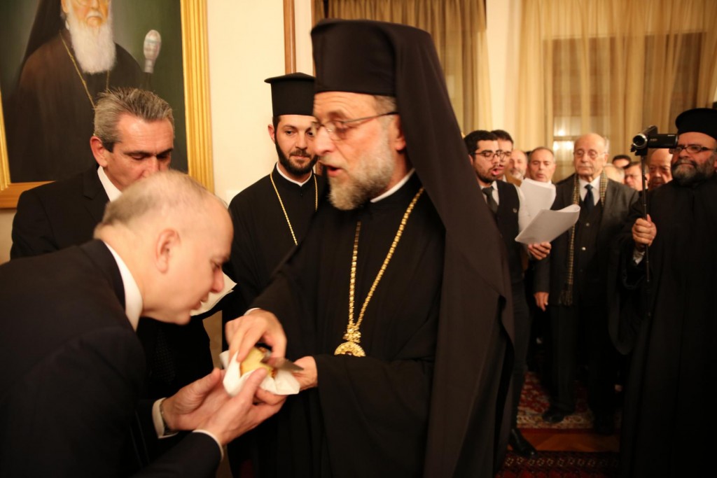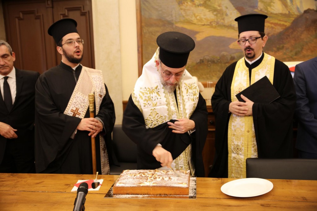 Μετά την Ακολουθία του Εσπερινού στη Μητροπολιτική κατοικία έλαβε χώρα η καθιερωμένη τελετή ευλογίας και κοπής της Αγιοβασιλόπιττας, με την παρουσία του Ιερού Κλήρου της Ιεράς Μητροπόλεως, του Υφυπουργού Τουρισμού κ. Μάνου Κόνσολα, του Δημάρχου Ρόδου κ. Αντωνίου Καμπουράκη, του Περιφερειάρχη Νοτίου Αιγαίου κ. Γεωργίου Χατζημάρκου, των τοπικών Αυτοδιοικητικών Αρχών, εκπροσώπων του Στρατού και των Σωμάτων Ασφαλείας, του Προξένου της Τουρκίας, εκπροσώπων των άλλων Χριστιανικών δογμάτων και θρησκευτικών κοινοτήτων, Μελών των Εκκλησιαστικών Επιτροπών, των Φιλοπτώχων Ταμείων των Ενοριών, των Στελεχών του Πνευματικού έργου των Ιερών Ναών, των Υπαλλήλων των Γραφείων της Μητροπόλεως κ. α..