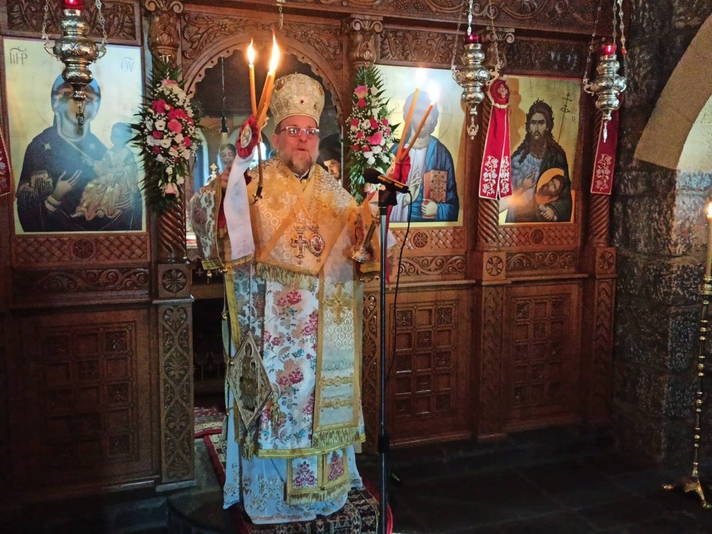 Την παραμονή της Εορτής του πανηγυρικού Εσπερινού χοροστάτησε ο Θεοφιλέστατος Επίσκοπος Ολύμπου κ. Κύριλλος, ενώ την κυριώνυμη ημέρα της Θείας Λειτουργίας προέστη ο Σεβασμιώτατος Μητροπολίτης μας, συλλειτουργούντος του αγίου Ολύμπου. Ο Σεβασμιώτατος στην ομιλία του αναφέρθηκε στο πρόσωπο της Υπεραγίας Θεοτόκου και συνεχάρη τον Ηγούμενο Αρχιμανδρίτη Άνθιμο Παλιόγλου και την Αδελφότητα.