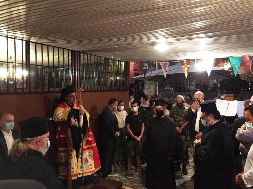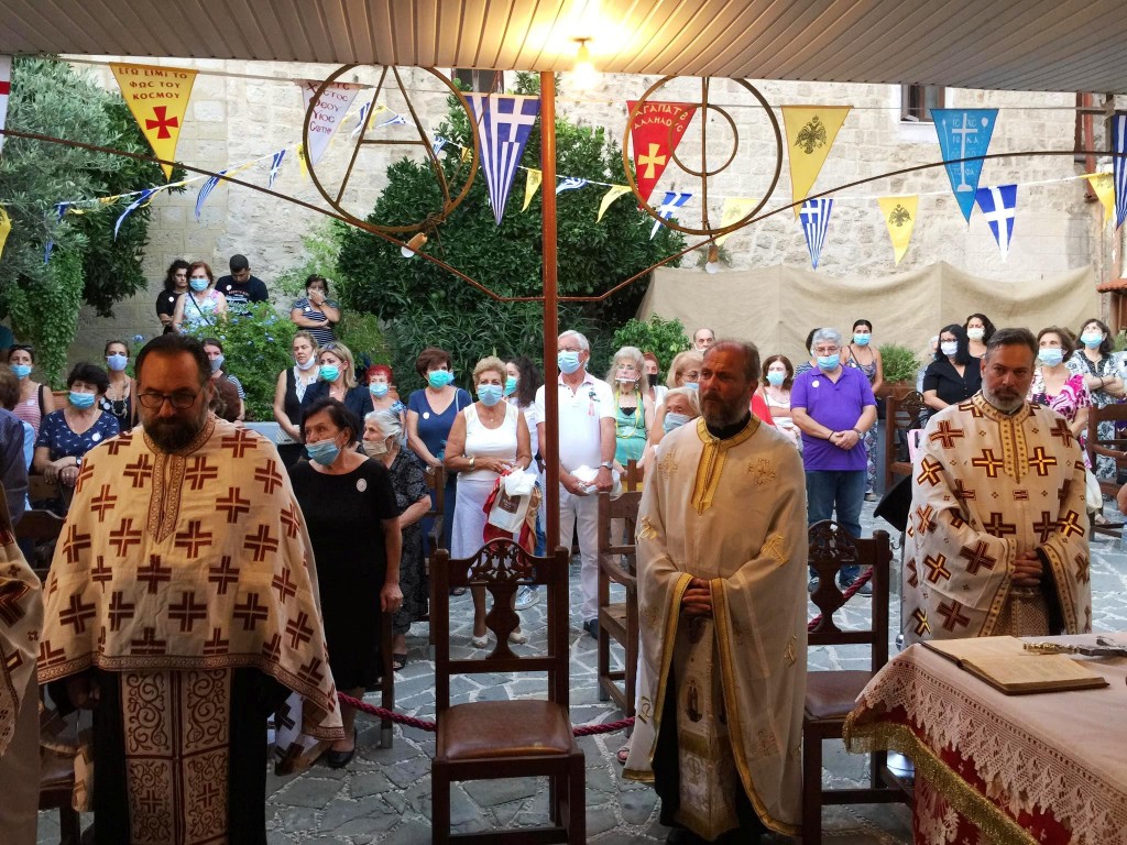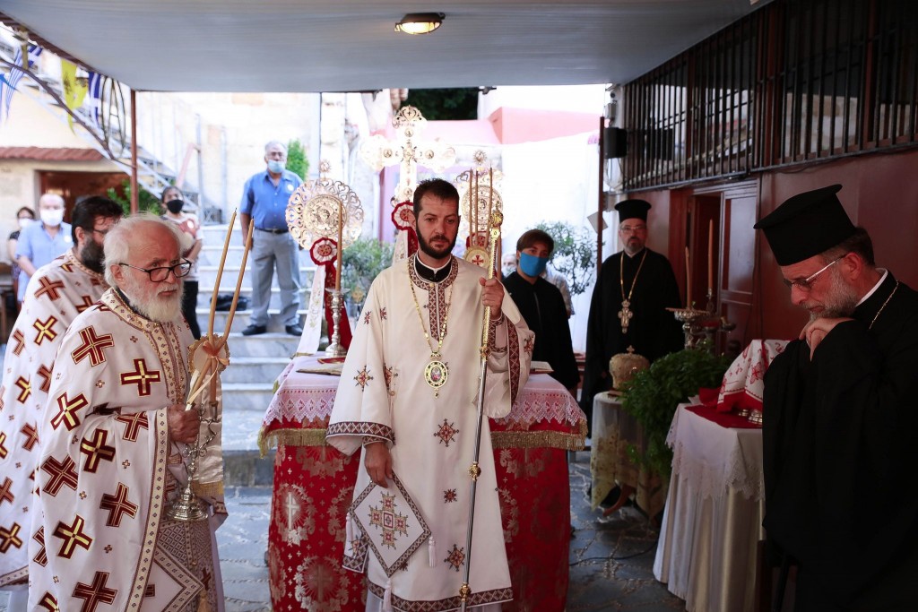Την παραμονή της εορτής, Τετάρτη 26 Αυγούστου 2020, τελέσθηκε στον αύλειο χώρο του Ιερού Ναού ο Μέγας Εσπερινός, χοροστατούντος του Σεβασμιωτάτου Μητροπολίτου μας. Παρέστησαν, μεταξύ των άλλων, ο Βουλευτής Δωδεκανήσων κ. Ιωάννης Παπάς, ο Δήμαρχος Ρόδου κ. Αντώνιος Καμπουράκης, ο Διοικητής της 95 ΑΔΤΕ κ. Δημήτριος Χούπης.