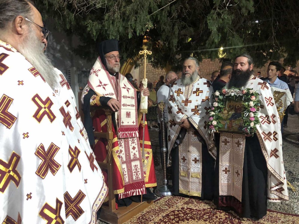 Ο Θεοφιλέστατος Επίσκοπος Ολύμπου κ. Κύριλλος χοροστάτησε του πανηγυρικού Εσπερινού στην ιερά Μονή Σκιαδίου, χοροστάτησε δε του Όρθρου και προέστη της Θείας Λειτουργίας στην ιερά Μονή Παναγίας Τσαμπίκας.